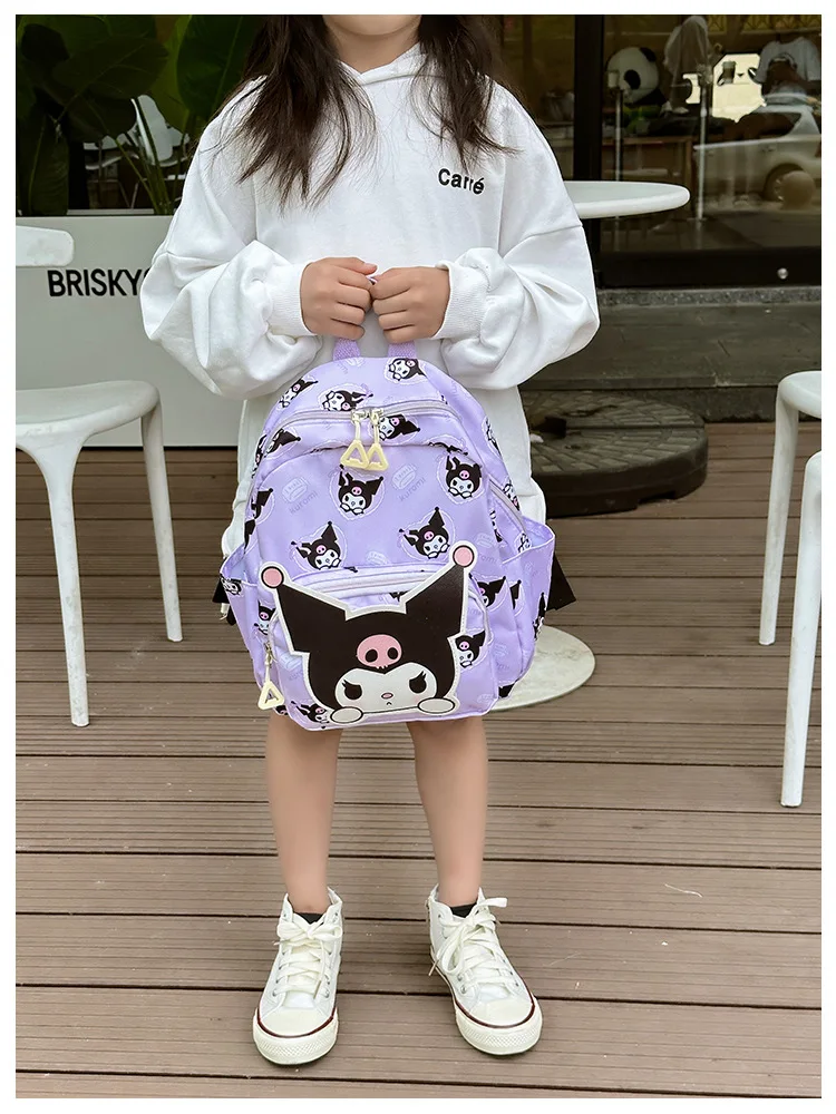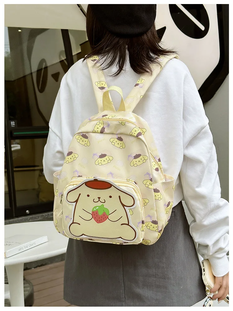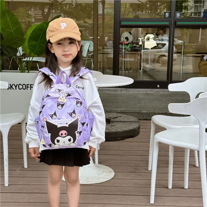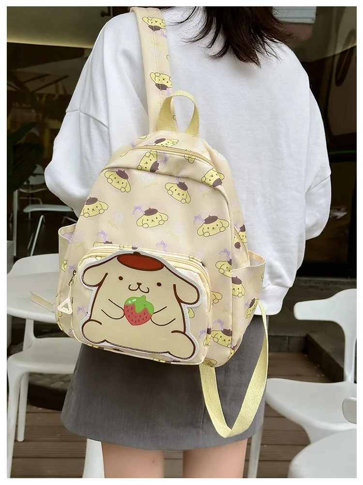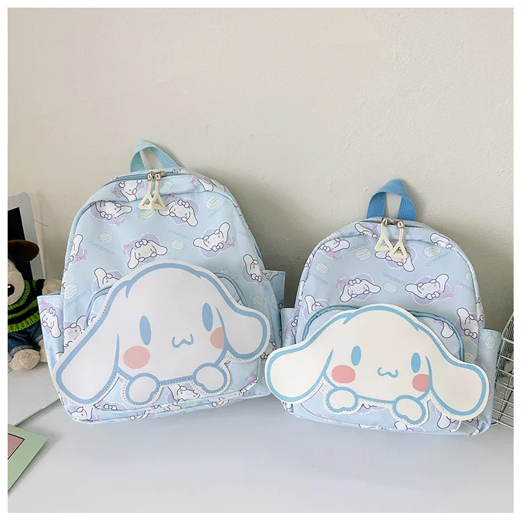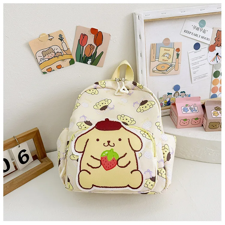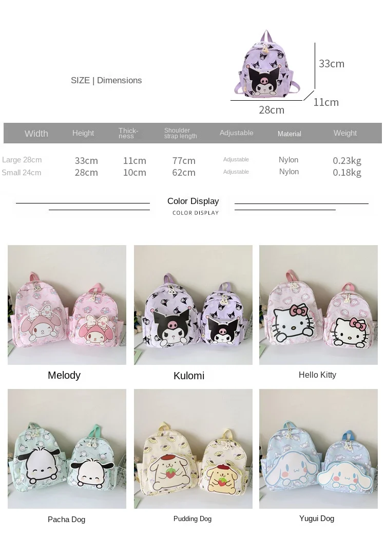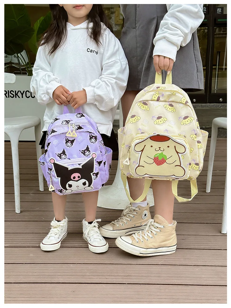 Color: Brown, Size: 16 inches - Anime Cartoon Kuromi Melody Cinnamoroll Backpack Boys Girls Cartoon Hello Kitty Kawaii Canvas Fashion Children's Schoolbag