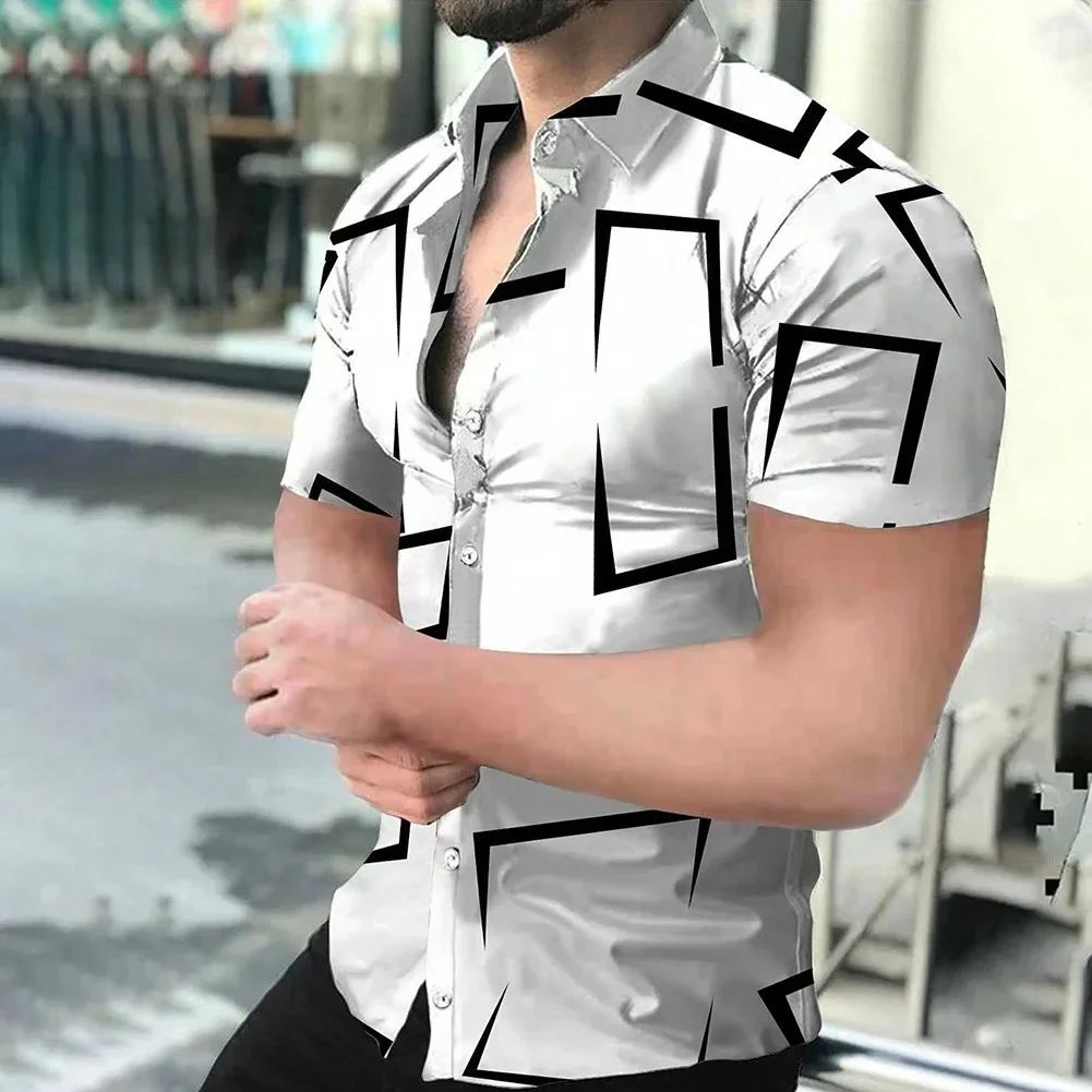 Color: Brown, Size: 5XL - 3D Men's Striped Printed Short Sleeve Shirt, Fashionable And Casual Loose Shirt, 2023 New Style.