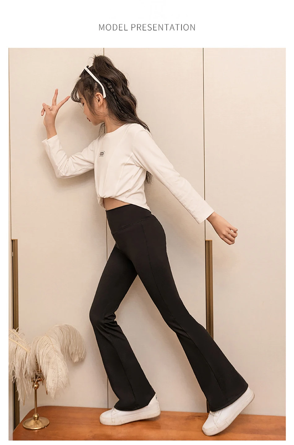Name: Girls High Waist Flared Pants for Spring and Autumn Kids Fashion Tight Leggings with Stylish Elastic Teenager Bottoms Clothes