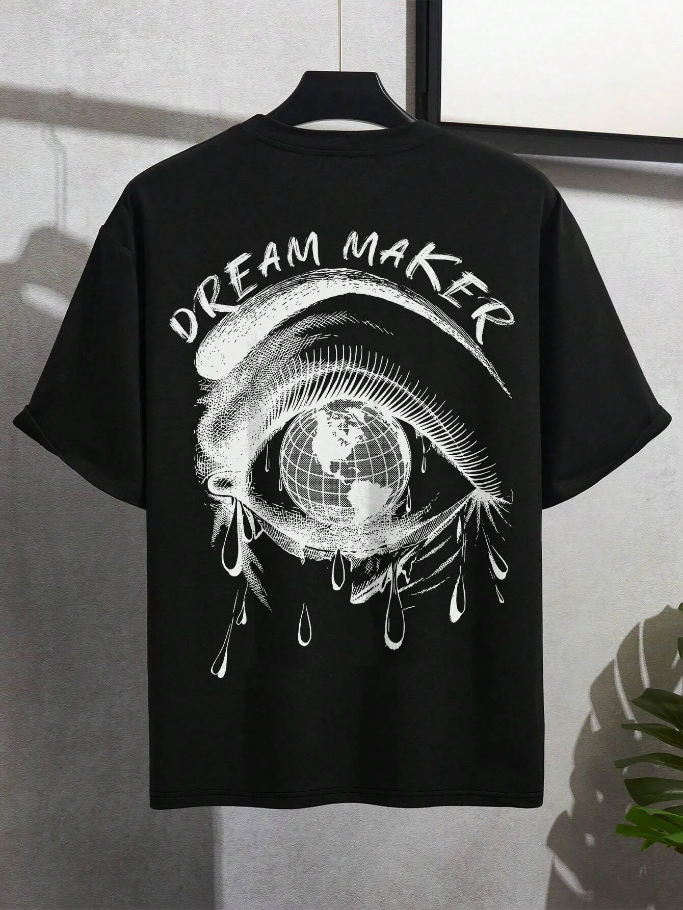 Color: Brown, Size: L - Dream Maker Tearful Earth Printing T-Shirt Men Clothes Summer Loose Tee Cotton Casual Street Tshirt Hip Hop Oversize T Shirts