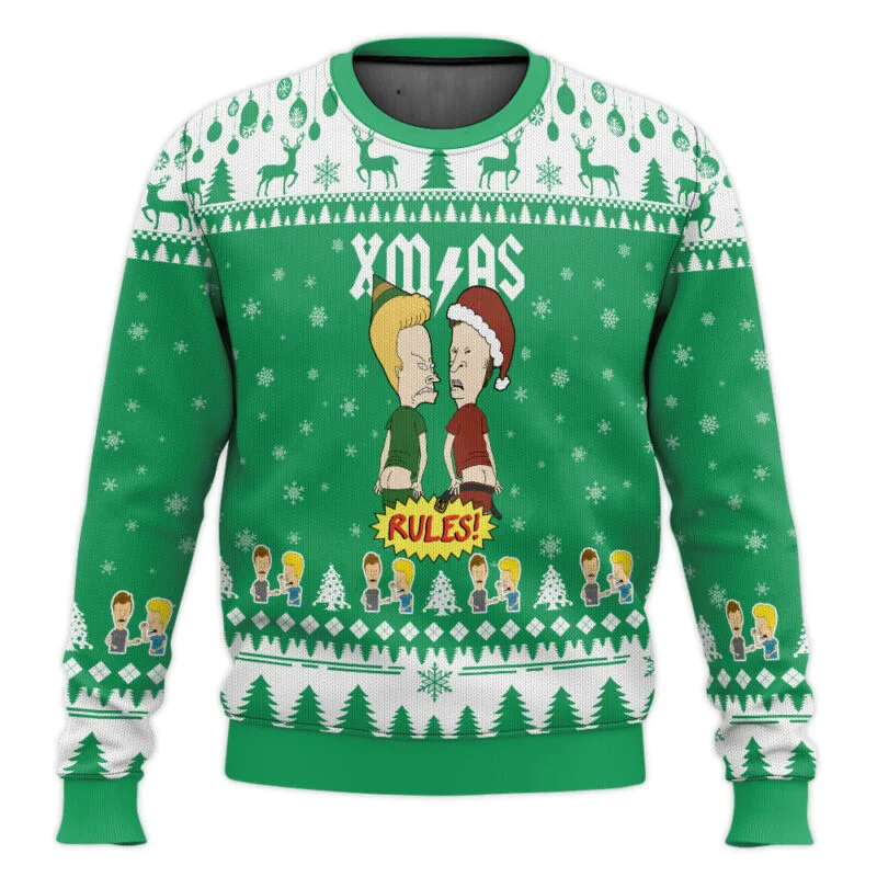 Color: Brown, Size: L - Xmas Rock Beavis and Butthead Ugly Christmas Sweater Cartoon Anime Women Men Pullover Tops New Fashion Couple Hoodie Sweatshirt