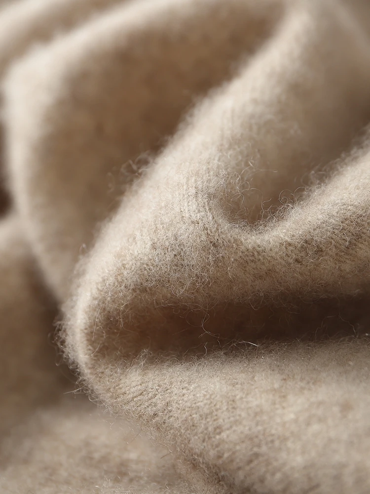 Fiber characteristics:The fiber diameter of cashmere is smaller than wool, the texture is more delicate and soft, and the scale structure of cashmere is smaller, making its thermal performance better than wool. Wool fibers are relatively thick, hard in texture, and not as warm as cashmere.