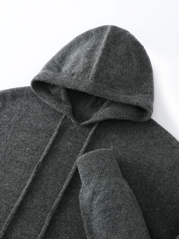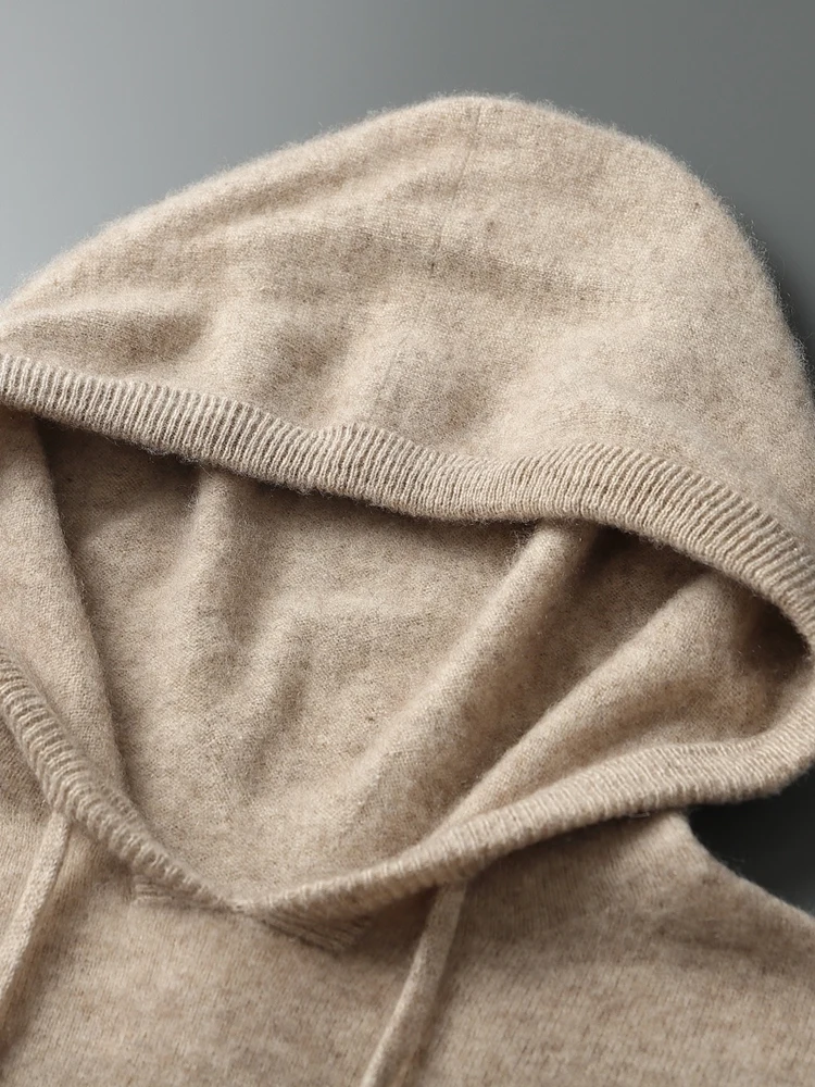 Color: Brown, Size: L - Yoyoselect Men's 100% Cashmere Luxury Sweater Hoodie Autumn Winter Thick Warm Hooded Pullover Casual Smart Jumpers Knitwear Top