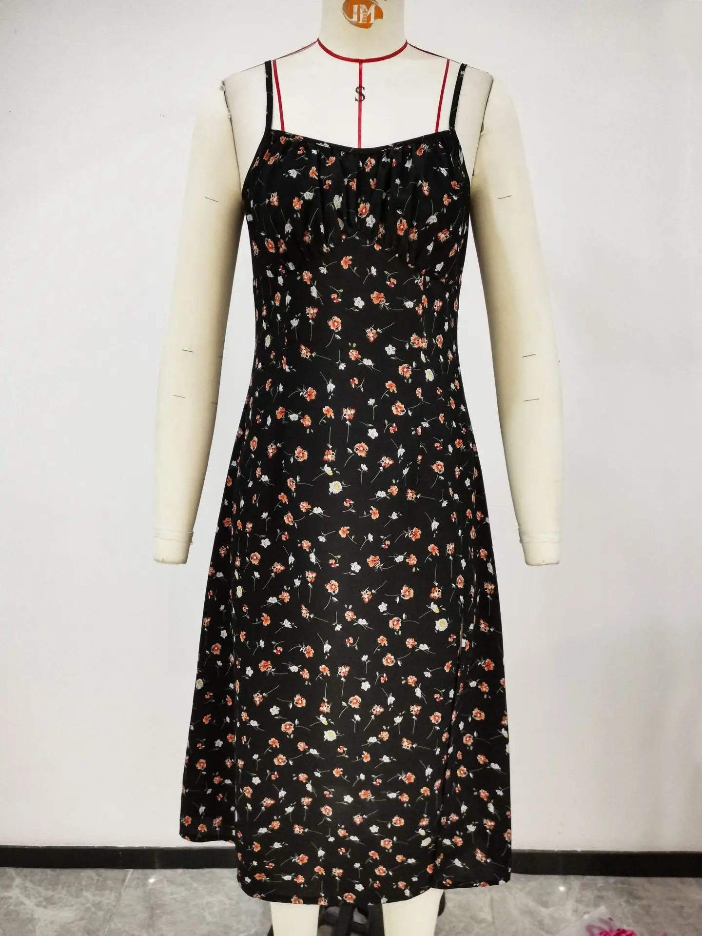 Color: Brown, Size: M - 2025 Summer Sexy Spaghetti Straps Dress Women Fashion Polka Dot Print Sleeveless Slit Dress Boho Casual Beach Midi Dresses