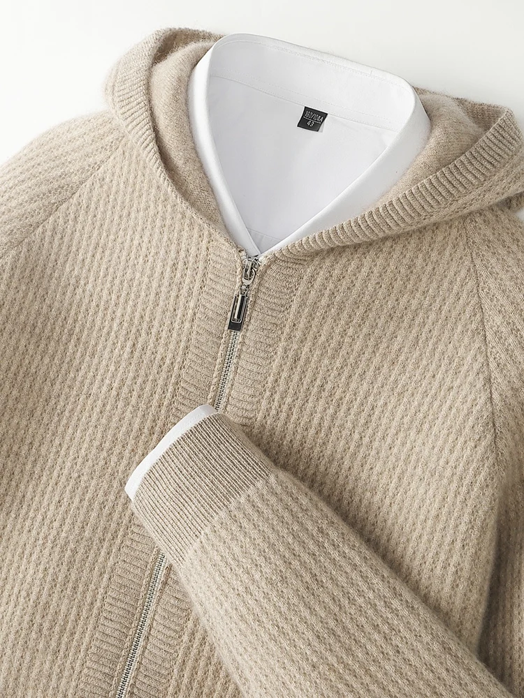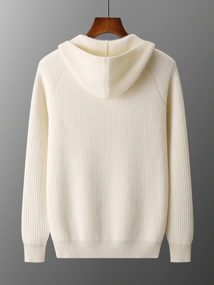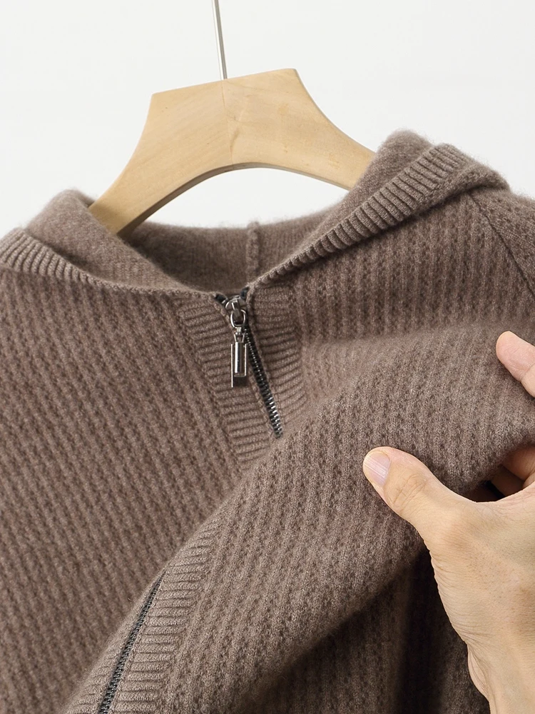 Color: Brown, Size: M - Daily Clothes Autumn Winter Sweater Men's Coat 100% Merino Wool Sweater Cardigan Knitted Jacket Thicked Hooded Outerwears Trend