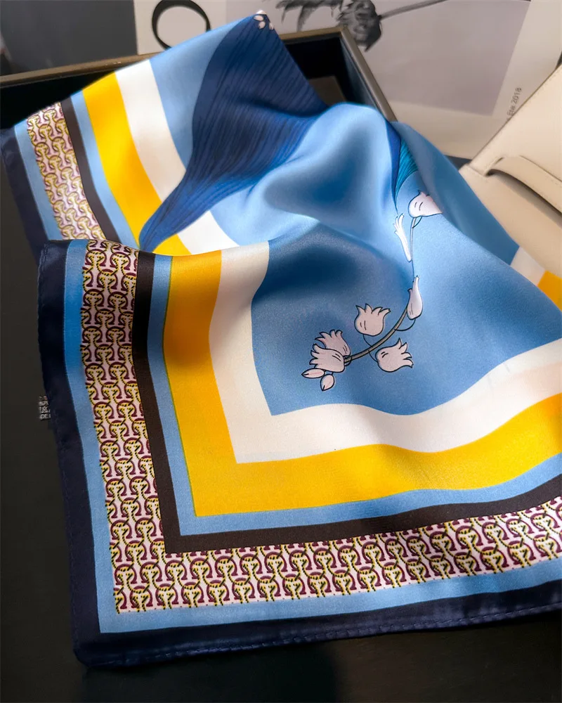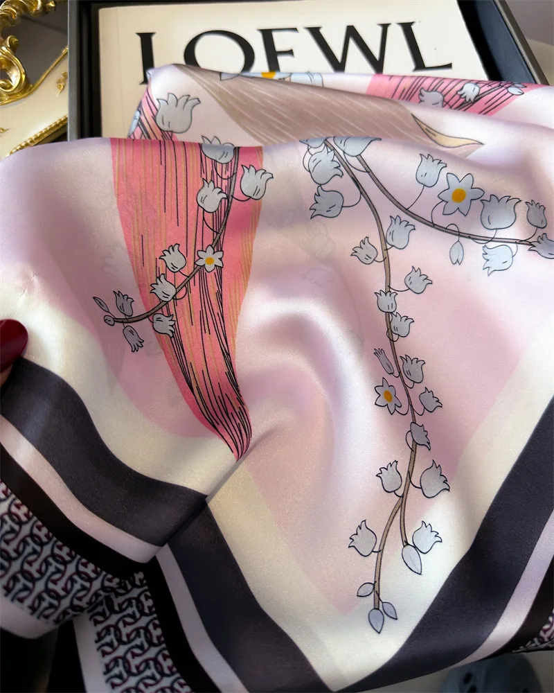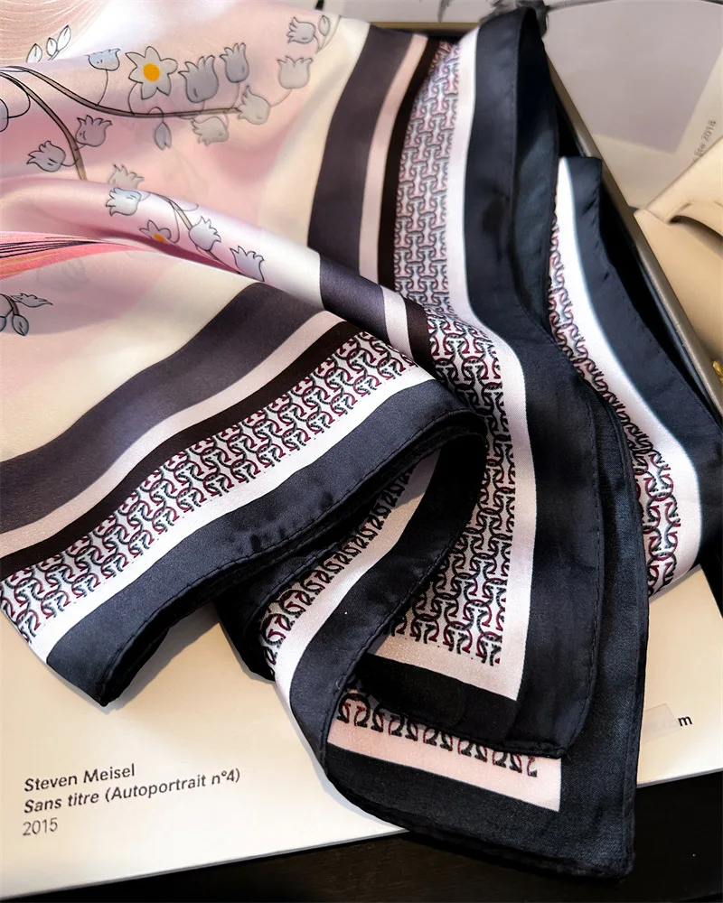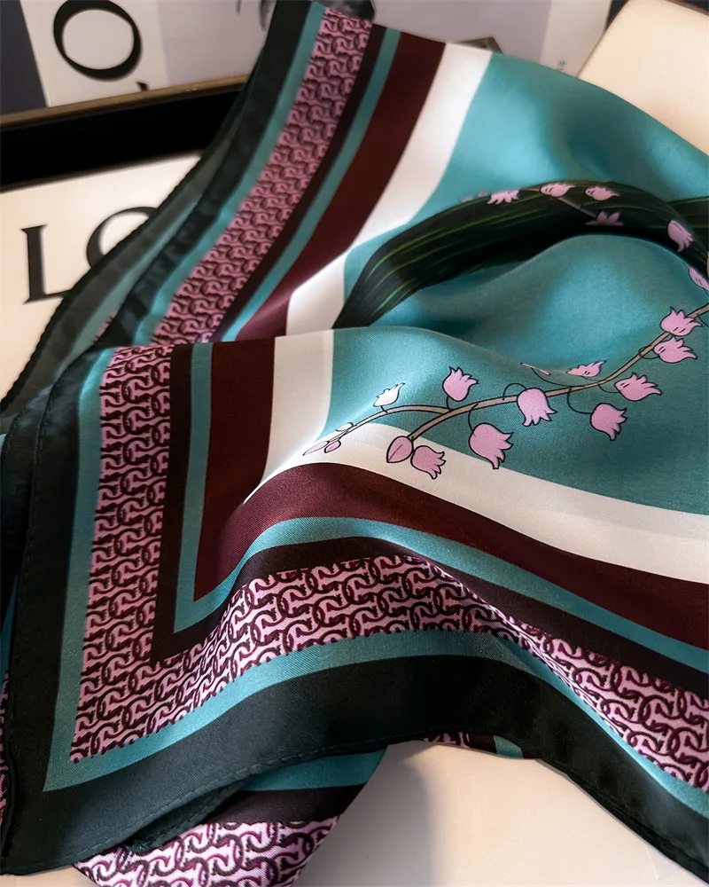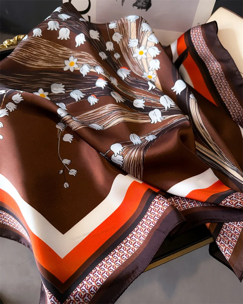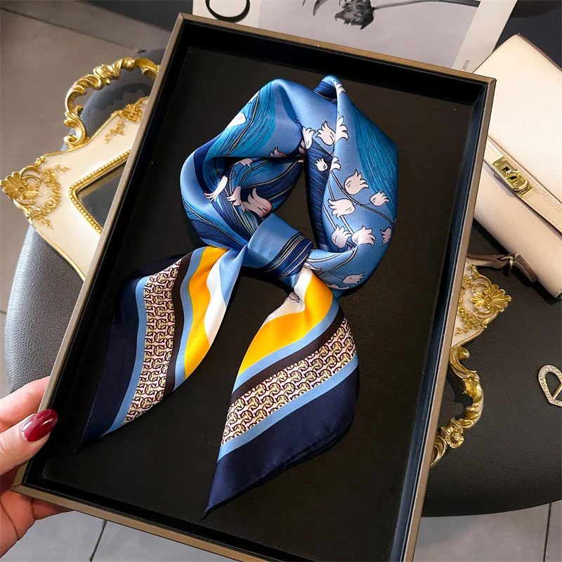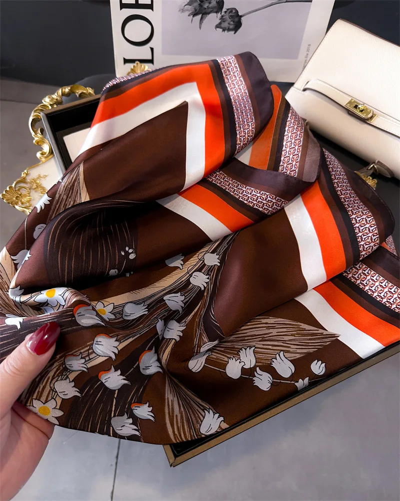 Color: Brown, Size: One Size - Cat Paw Print 70*70cm Silk Square Scarf Women Soft Satin Foulard Bag Ribbon Female Hairband Neckerchief Hijab Scarfs Headband