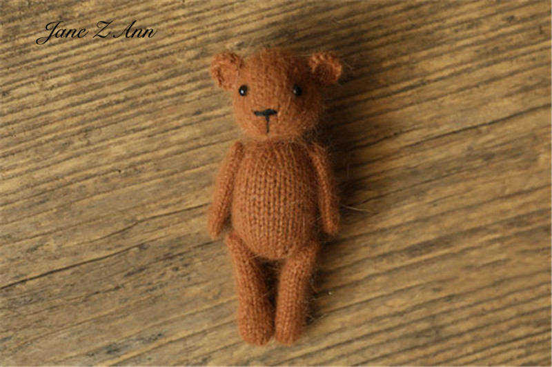 Color: Brown, Size: ONE SIZE - Handmade mink plush dolls knitted calf rabbit bear mouse newborn full moon photography props