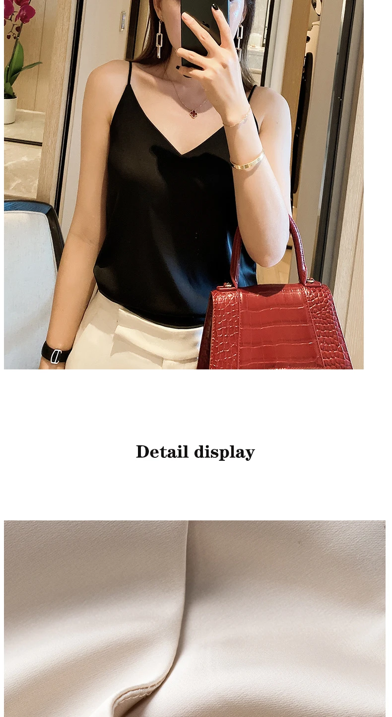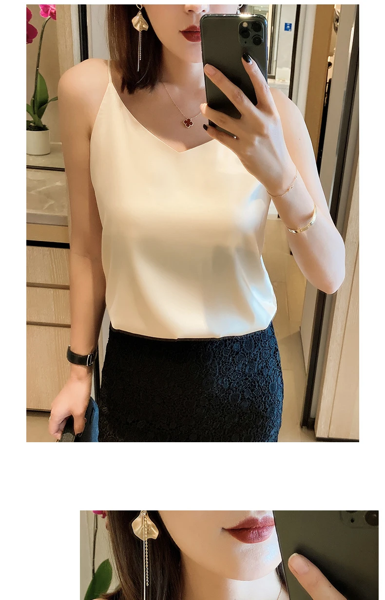 Color: Brown, Size: XL - 2024 Summer Camisole Slim Vest Sexy Women Sleeveless V-Neck Gray Tee Tank Tops Female Solid Black/White Korean Crop Tops Y2k