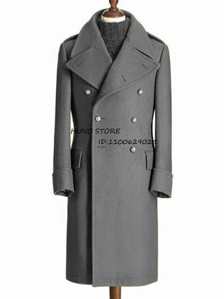 Color: Brown, Size: XL - Windbreak Men's Jacket Wool Long Coat Lapel Double Breasted Men's Trench Coats Windbreakers Jackets Man Winter 2023 Martens Male