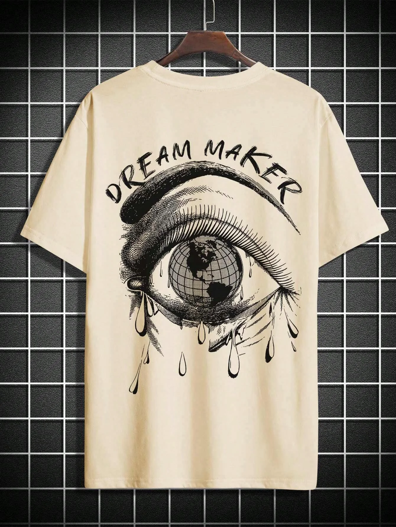 Color: Brown, Size: XXL - Dream Maker Tearful Earth Printing T-Shirt Men Clothes Summer Loose Tee Cotton Casual Street Tshirt Hip Hop Oversize T Shirts