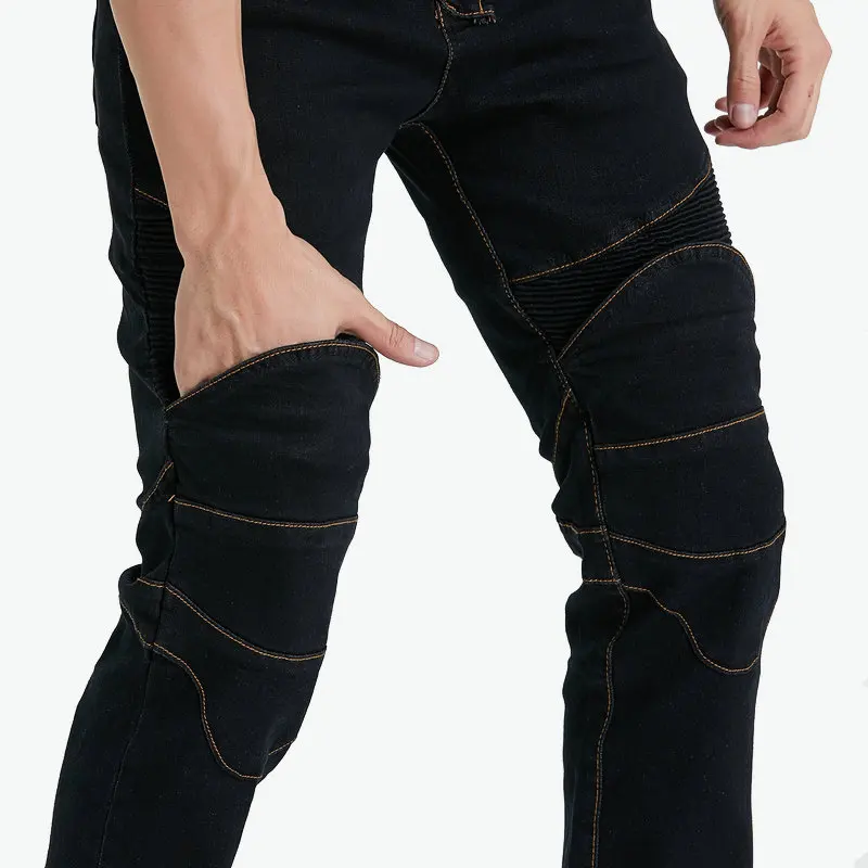 Color: Brown, Size: XXXL - Mens Black Biker Jeans Motocycle Denim Pants Male Stretch Original Trousers Off-road Pants Protection Clothing 4xl Plus Size