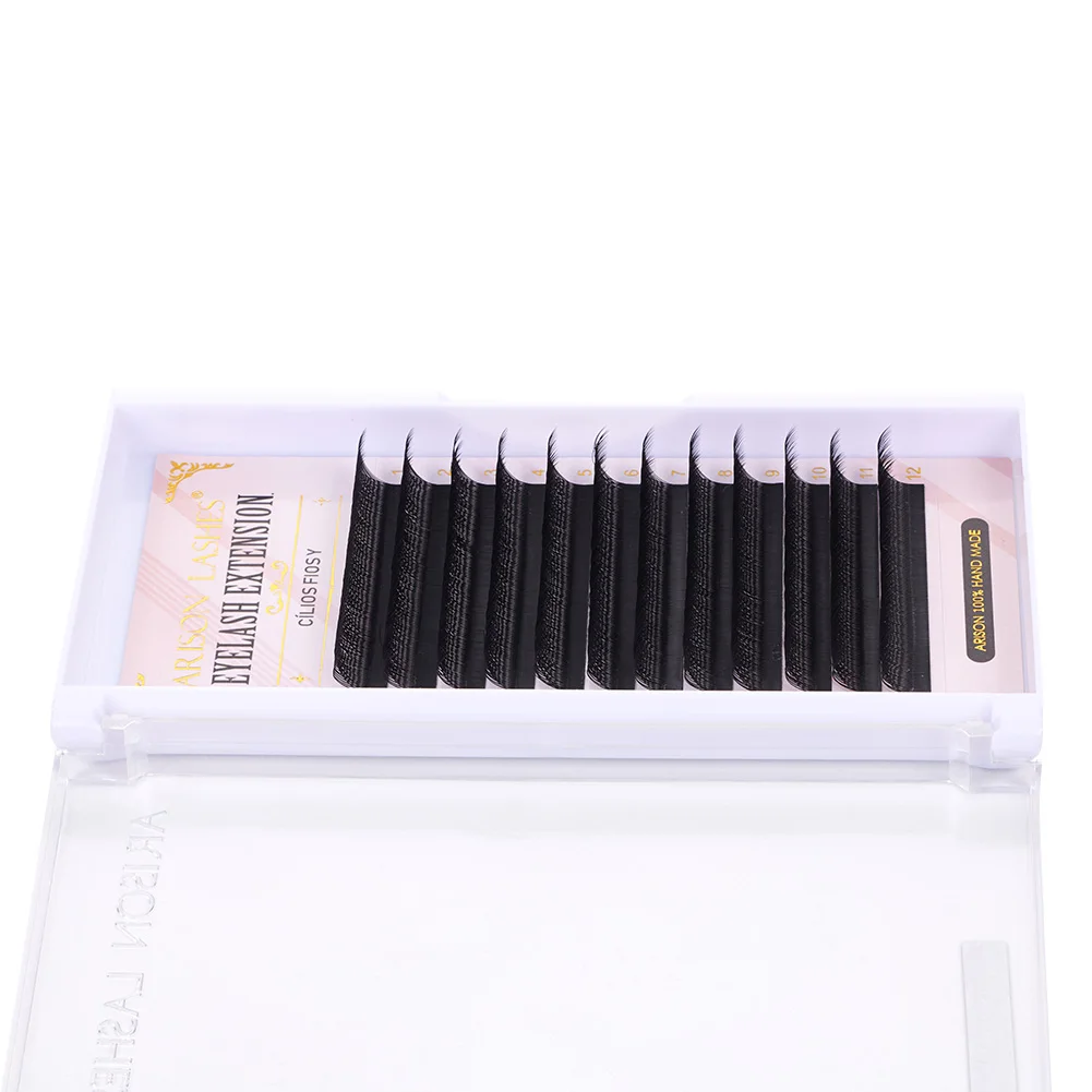 The curl keeps stable more than 1 year and the thickness standard. Because the lash extensions is 100% hand-made by workers. It is made of the high quality black silk material.