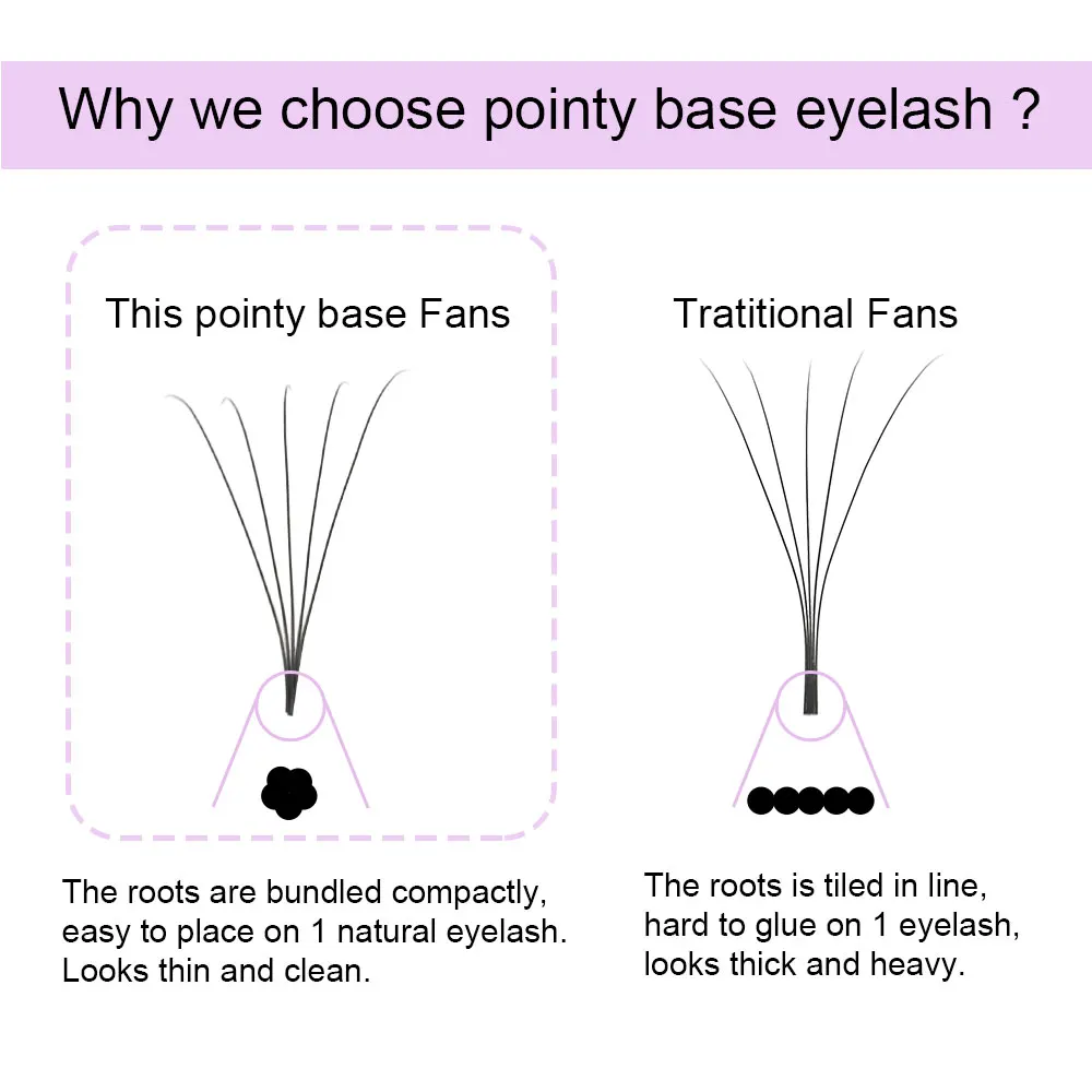 Pointy base: eyelash roots are bundled compactly, it's easy to be placed to on 1 natural eyelash, looks thin and more natural.