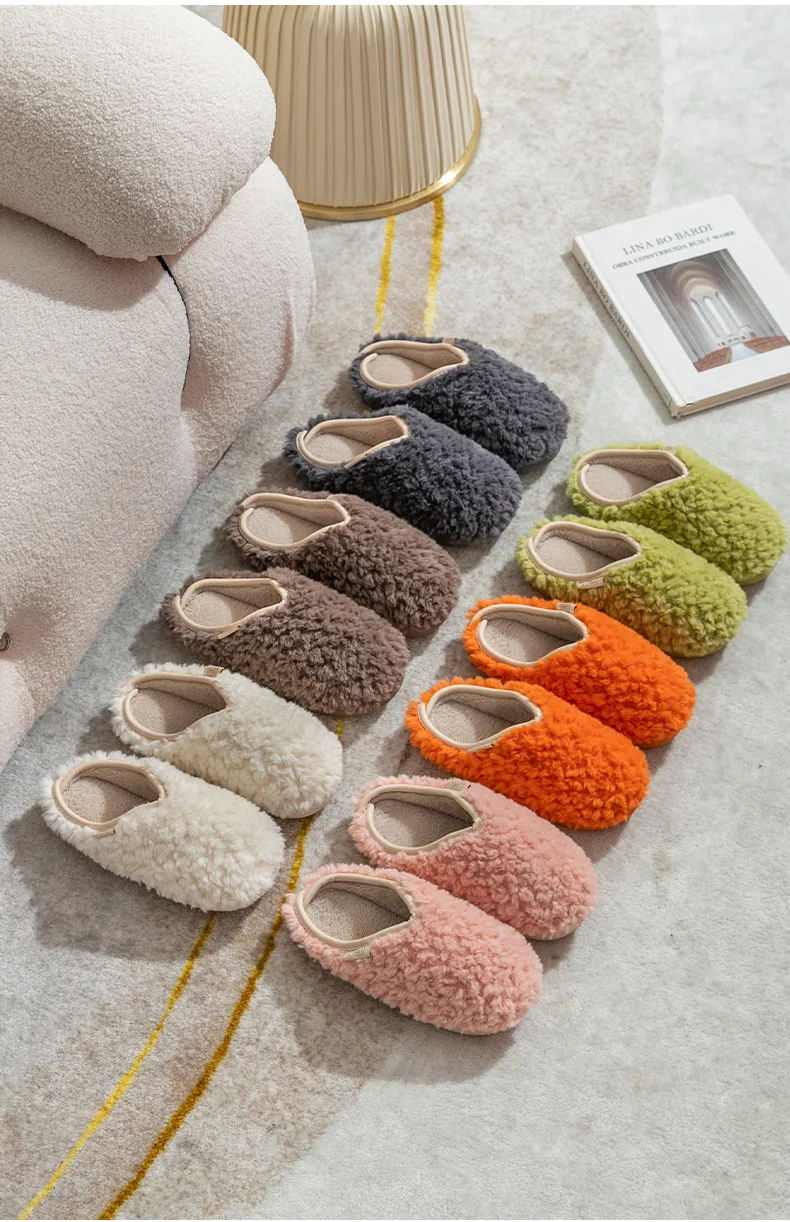 Crestar Warm Fluffy Women Slippers Winter New Indoor Soft Sole Fuzzy Bedroom Flat Slides Non-slip Fleece Lind Fur House Slippers