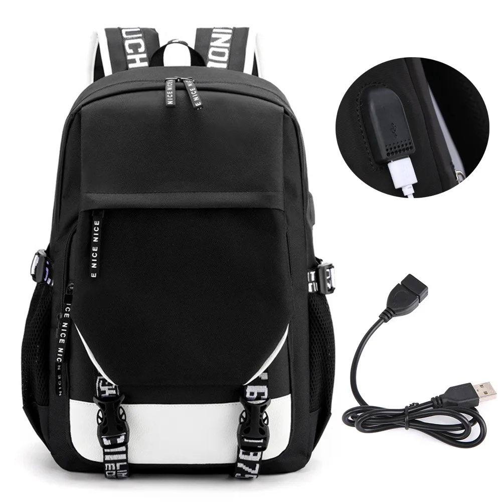 Color: Burgundy - Anime Demon Slayer Kamado Nezuko Backpack School Book Bags Mochila Travel USB Port Bag Laptop Boy Girls Gift