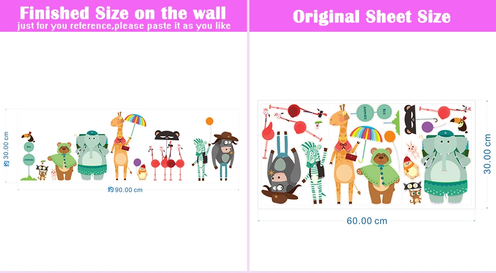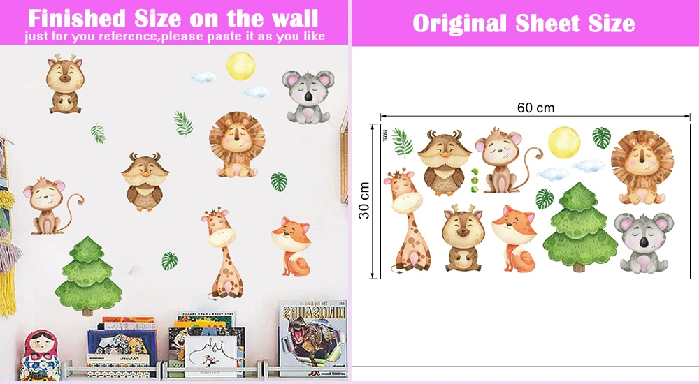 Color: Burgundy - Funny Animals Bird Swinging Wall Stickers Kids Room Decoration Diy Cartoon Monkey Giraffe Lion Mural Art Pvc Posters Home Decals