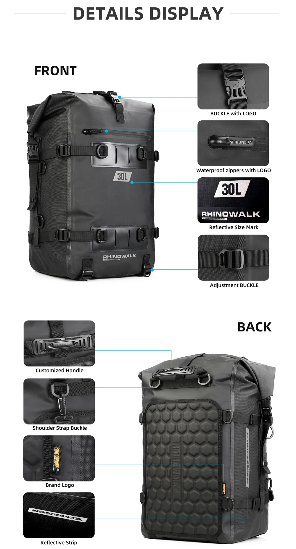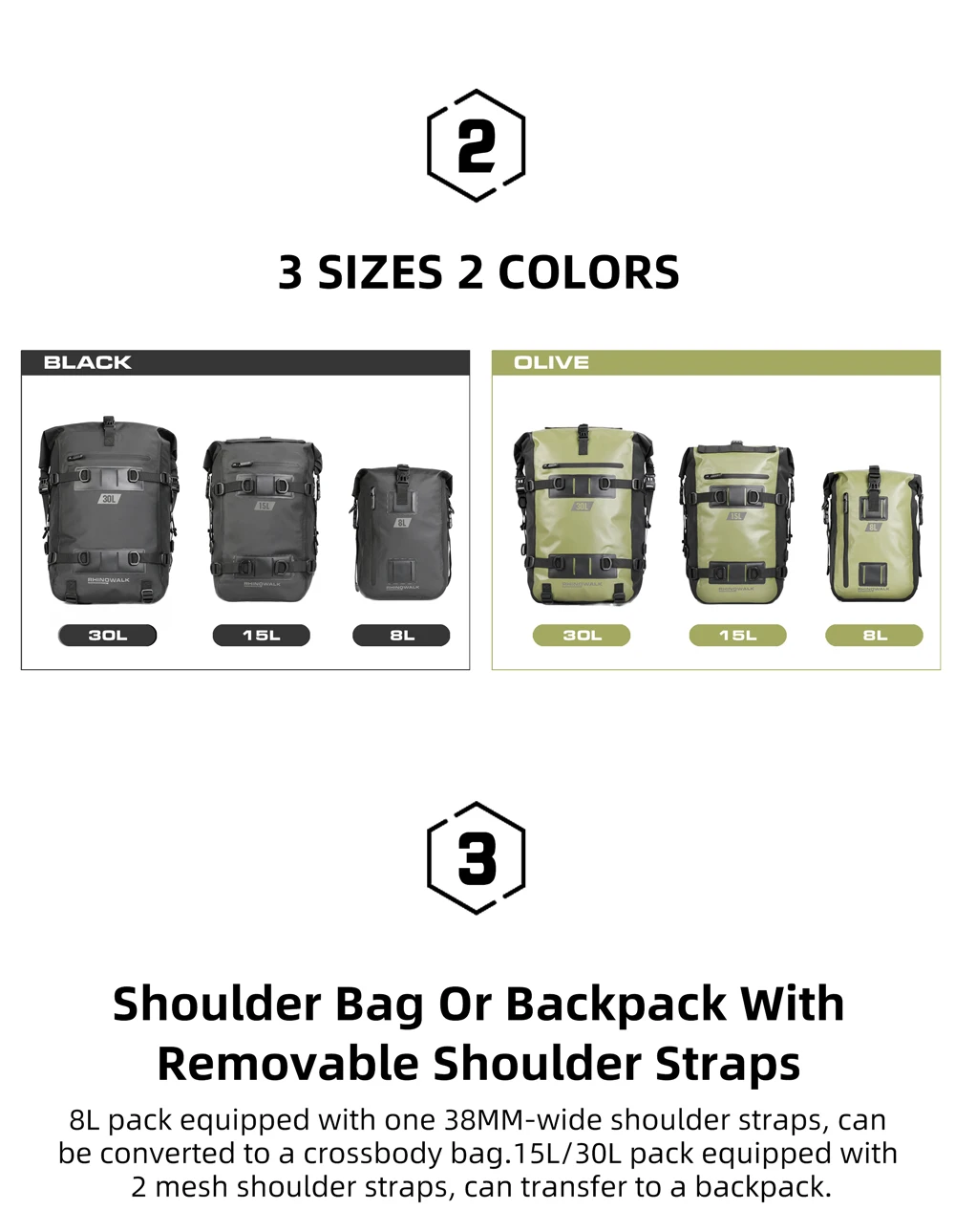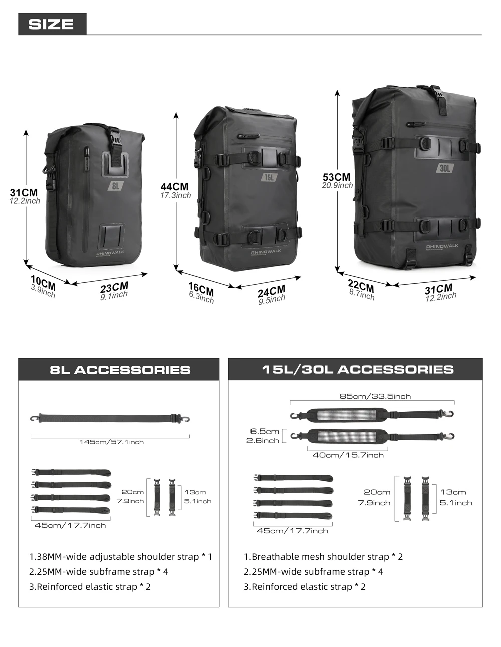 NAME:8L/15L/30L Waterproof Modular Motorcycle Pack