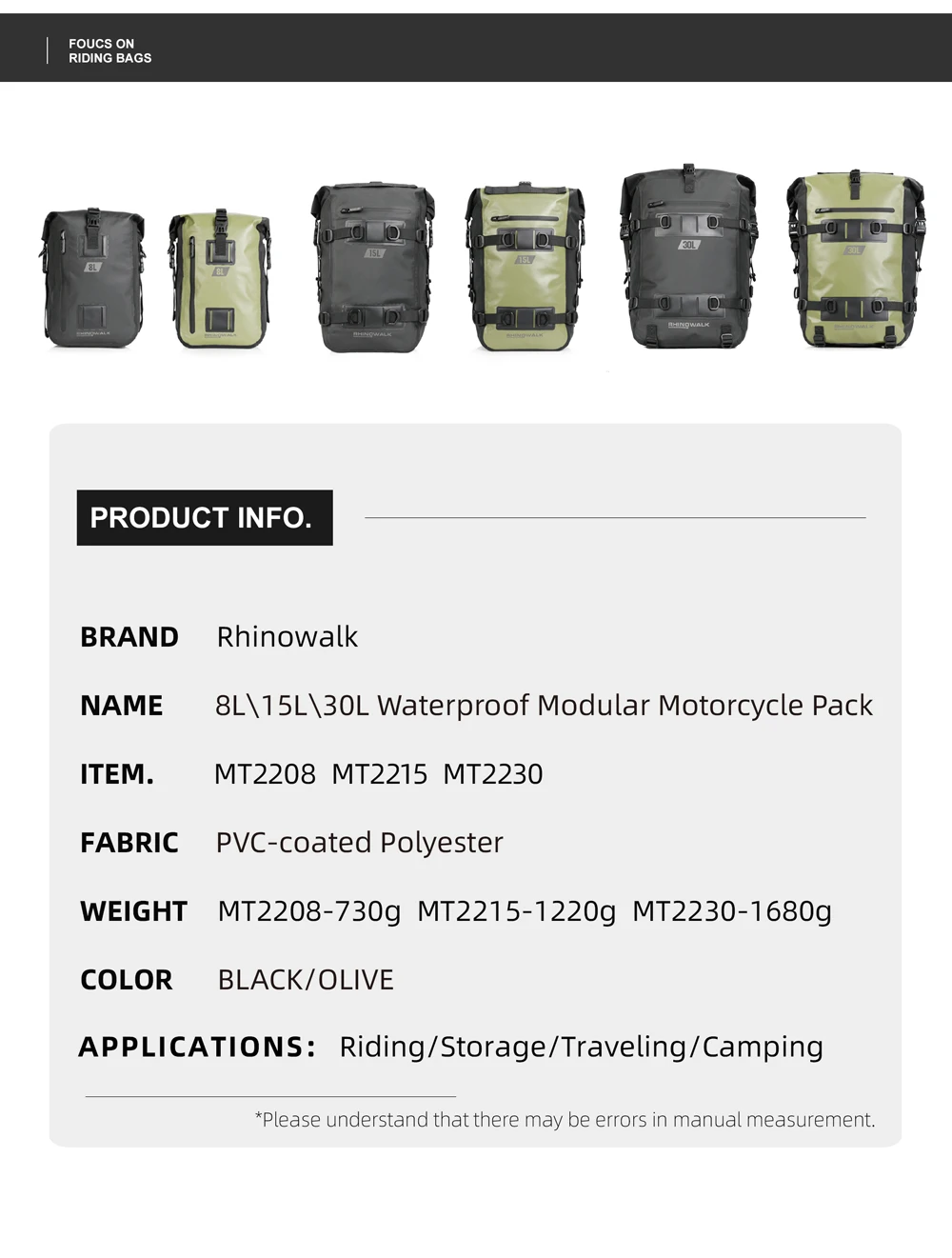 APPLICATIONS:Riding/Storage/Traveling/Camping