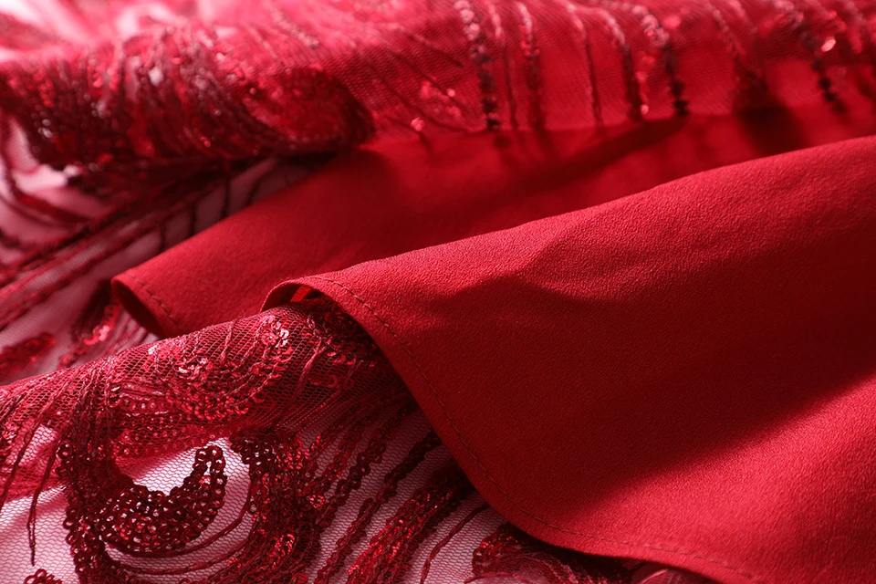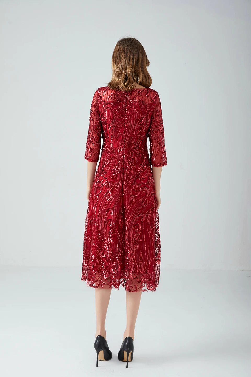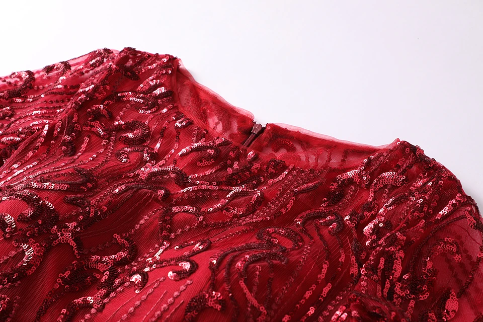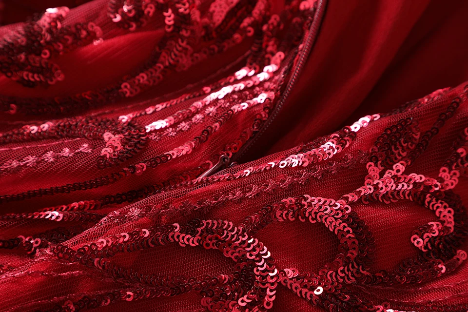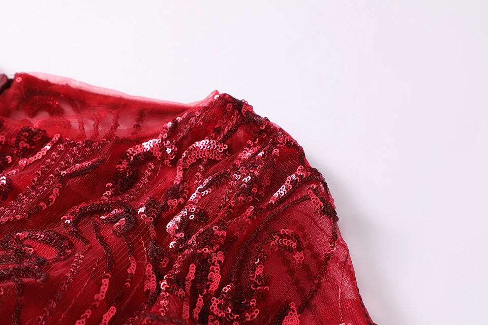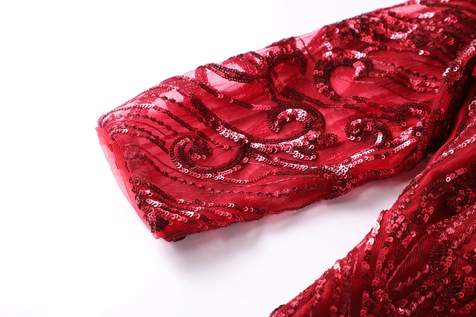 Color: Burgundy, Size: 4XL - Women's Lace Dress Sequin Evening Dresses Spring and Autumn New Wedding Banquet Broad Wife Fat Plus Size Long Dress Long Red