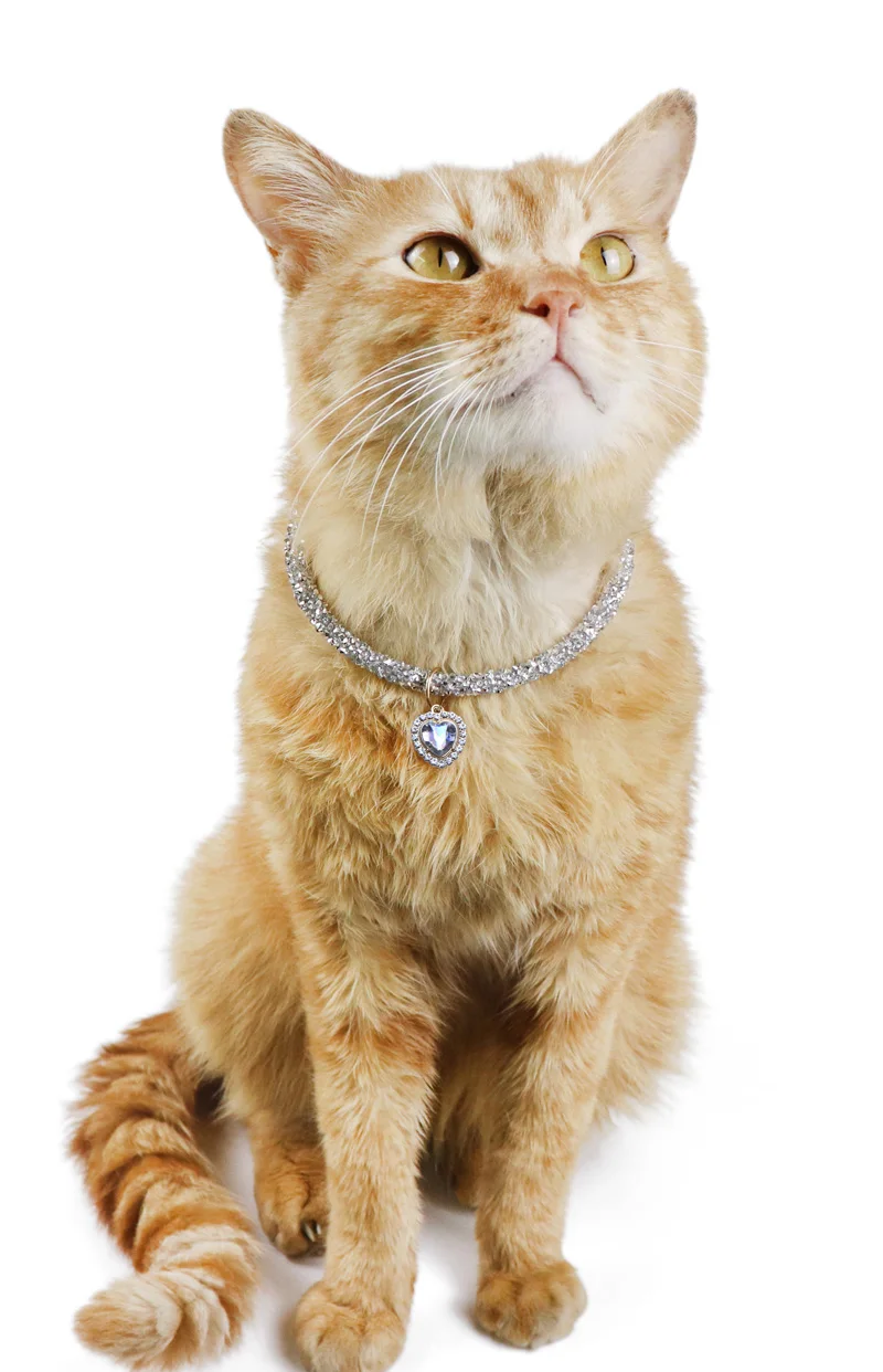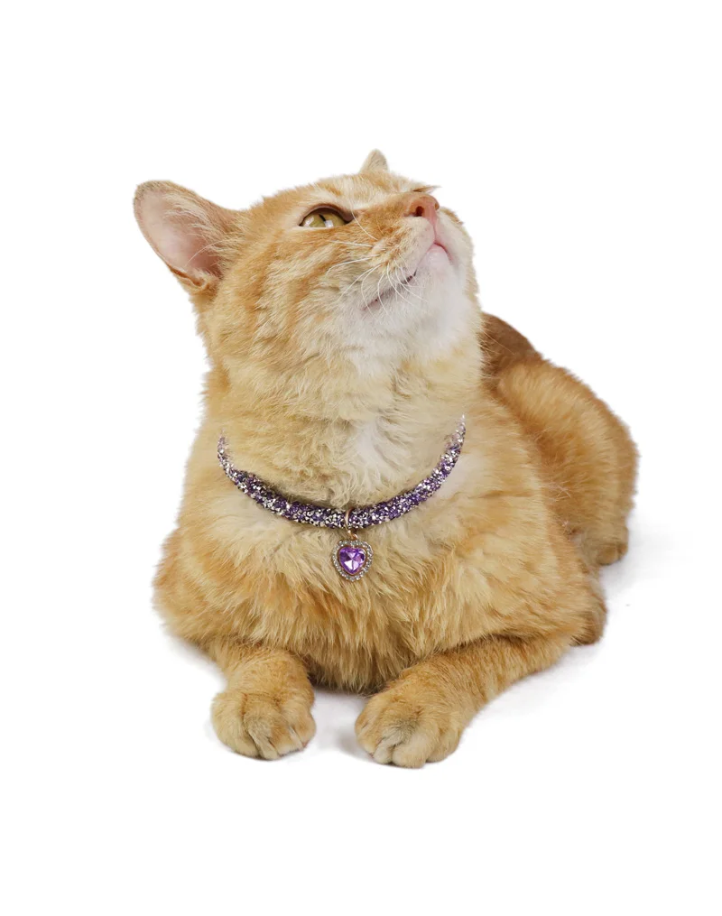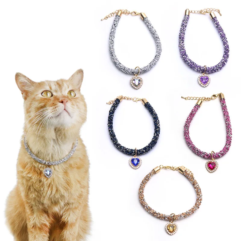 Color: Burgundy, Size: S - Luxury Cat Collar with Heart Crystal Pendant Puppy Chihuahua Necklace Reflective Rhinestone Kitten Neck Strap Pets Accessories