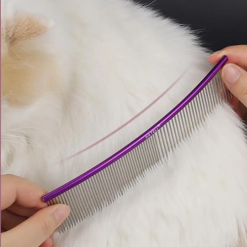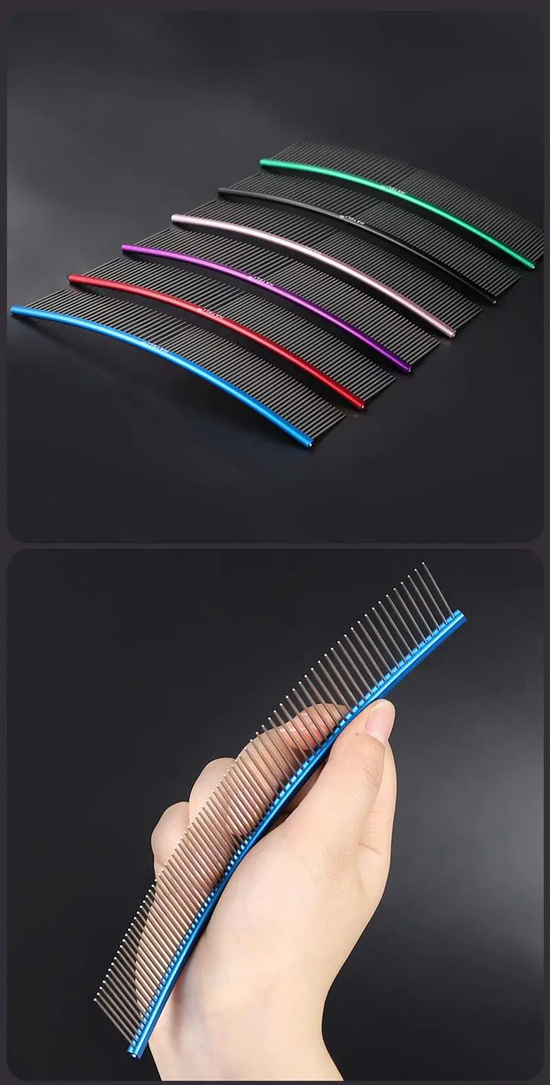 Pet Curved Comb Stainless Steel Combs Professional Pet Grooming Comb Dense Sparse Teeth Dog Cat Cleaning Brush Open Knot Comb