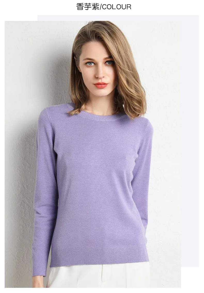 Color: camel, Size: L - Women Slim O-Neck Solid Pullover Cashmere Wool Blending Sweater Autumn And Winter Long-Sleeved Knit Bottoming Shirt Large Size