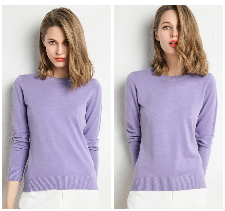 Color: camel, Size: XL - Women Slim O-Neck Solid Pullover Cashmere Wool Blending Sweater Autumn And Winter Long-Sleeved Knit Bottoming Shirt Large Size