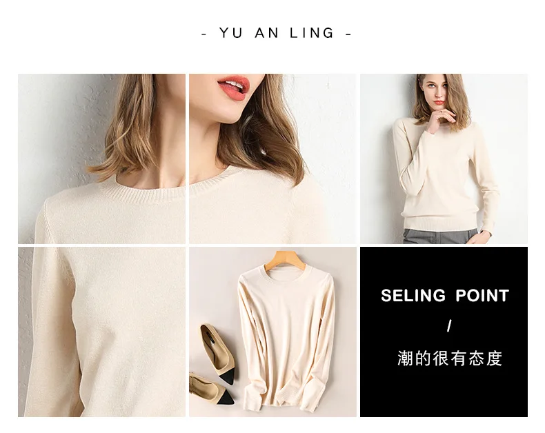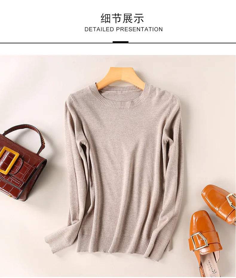 Color: camel, Size: XXL - Women Slim O-Neck Solid Pullover Cashmere Wool Blending Sweater Autumn And Winter Long-Sleeved Knit Bottoming Shirt Large Size