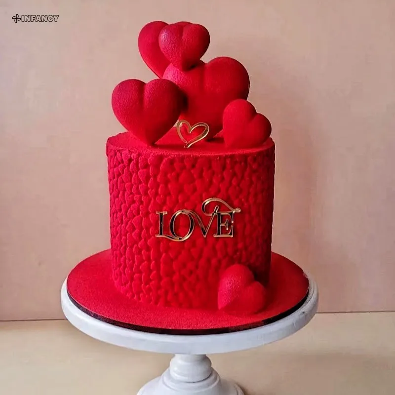 Color: champagne - 1Pcs Acrylic Cake Toppers Supplies Hearts Baking Dessert Flag Placard Decoration Proposal Anniversary Wedding Birthday Party