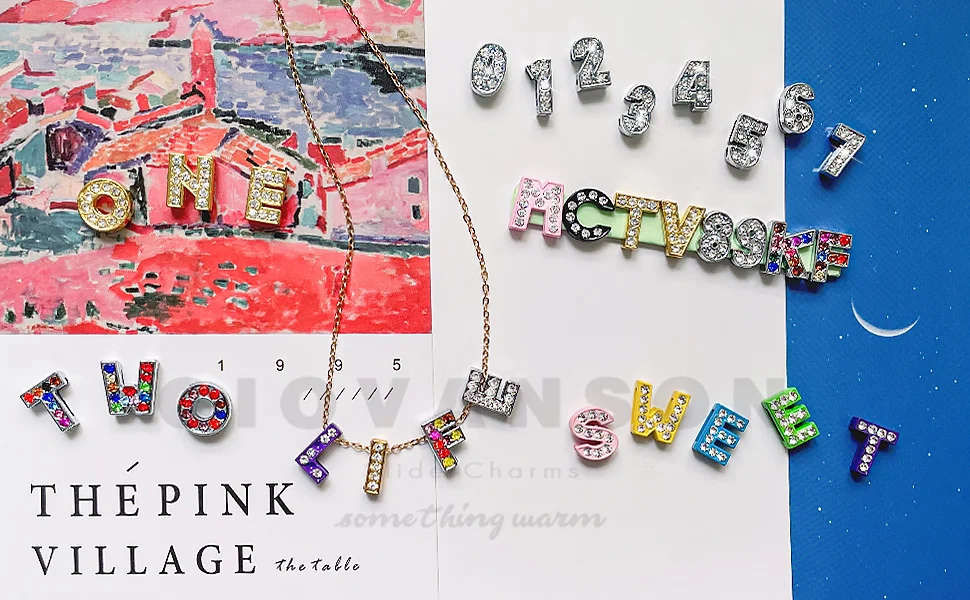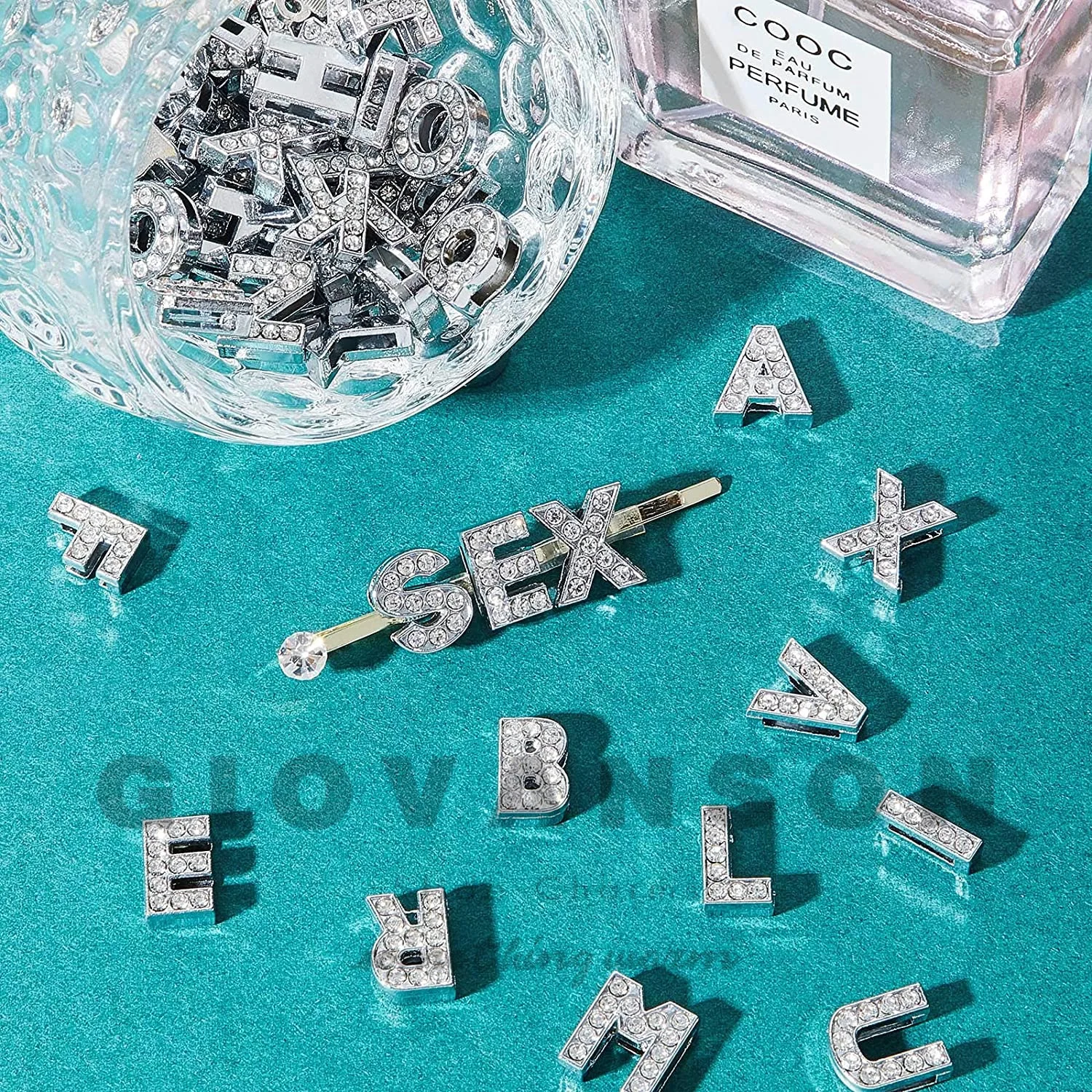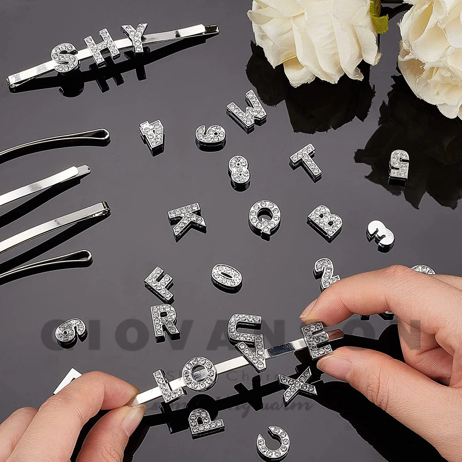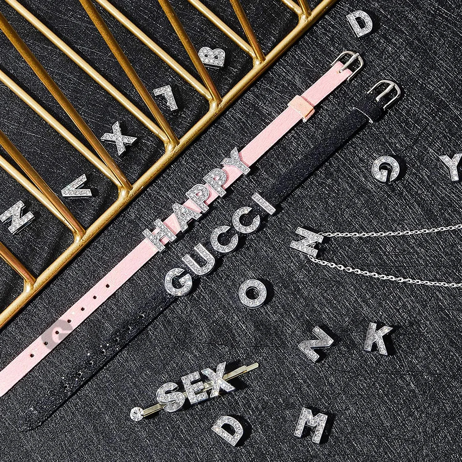 Color: Champagne - Rhinestone Slide Charms Letters For Jewelry Making Women Bracelet 8mm Alphabet A-Z Pet Collar Necklace DIY Accessories Gift