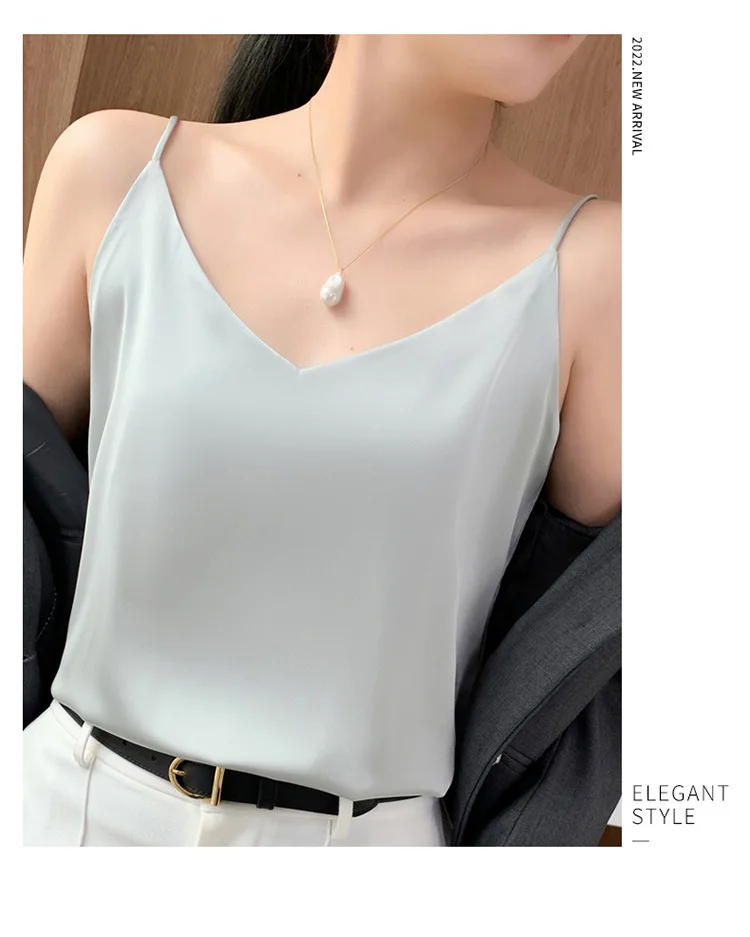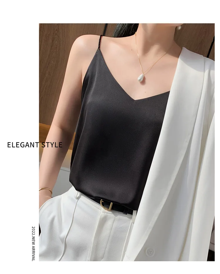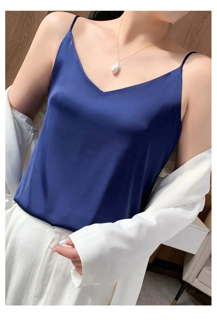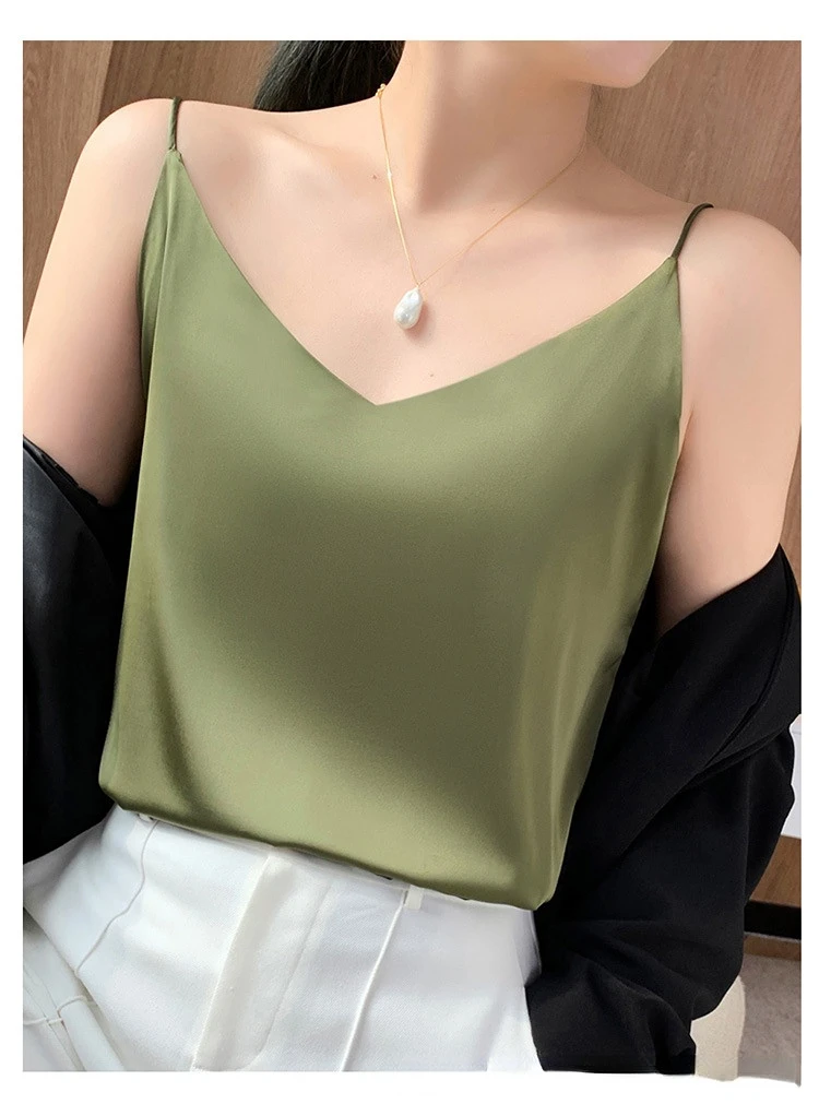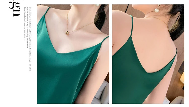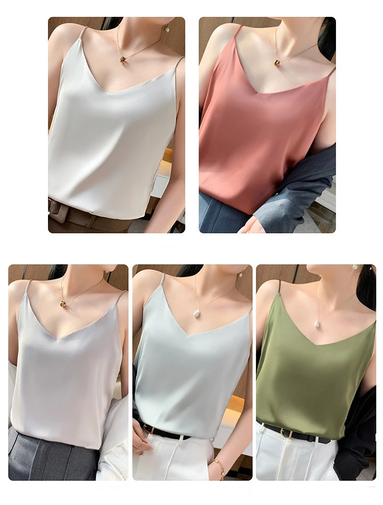 Color: Champagne, Size: S - Fashion Silky Camisole Women's Inner With White Bottoming Satin Top Summer V-neck Thin Section