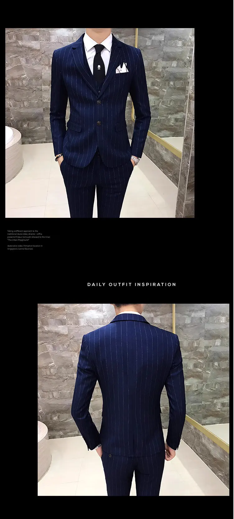 Color: Champagne, Size: S - Gray Men Classic Striped/Checked Suits, Business Office 3 Piece, Asian Size Slim Fit Men Dress Jacket & Pants with Vest, S-4XL