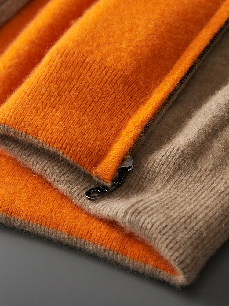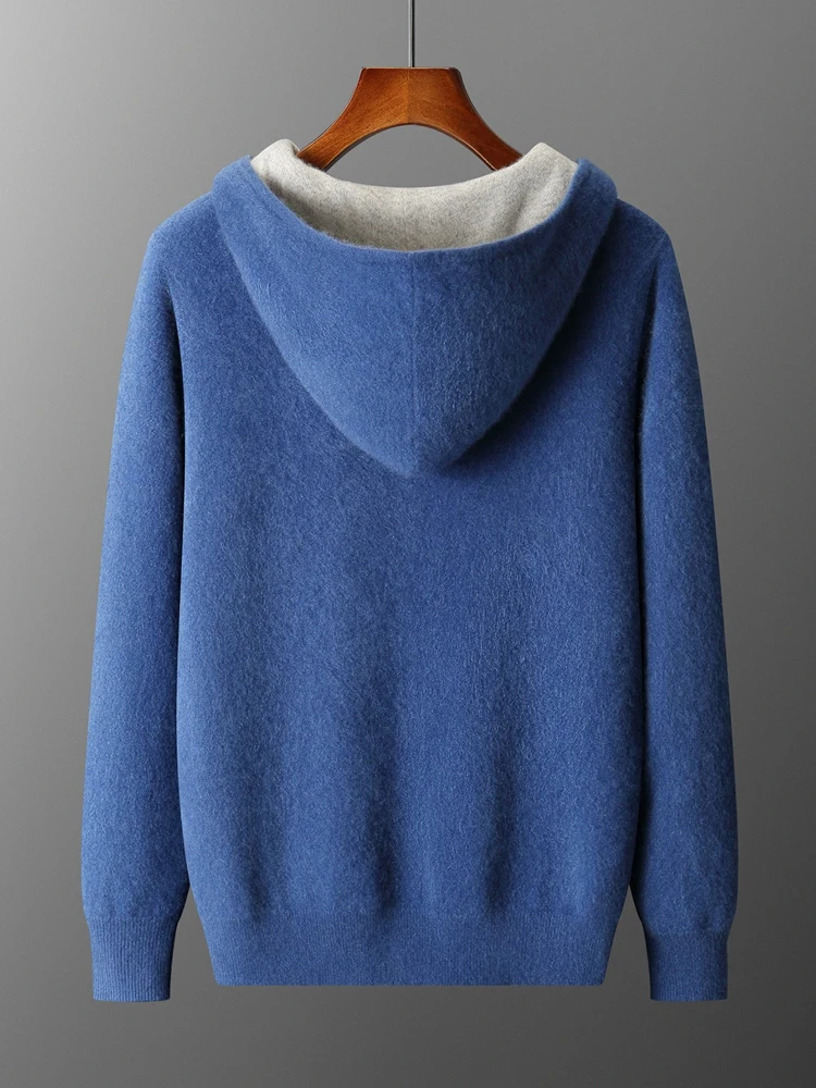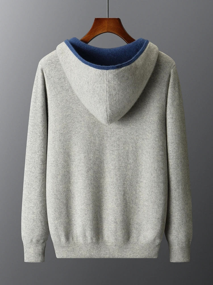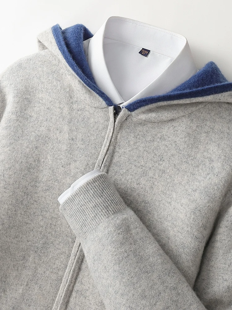 Color: Champagne, Size: XXL - Reversible Men's Wool Cardigan Sweater Autumn Winter Hooded Solid 100% Merino Wool Knitted Casual Simple Man Jackets Thick Warm