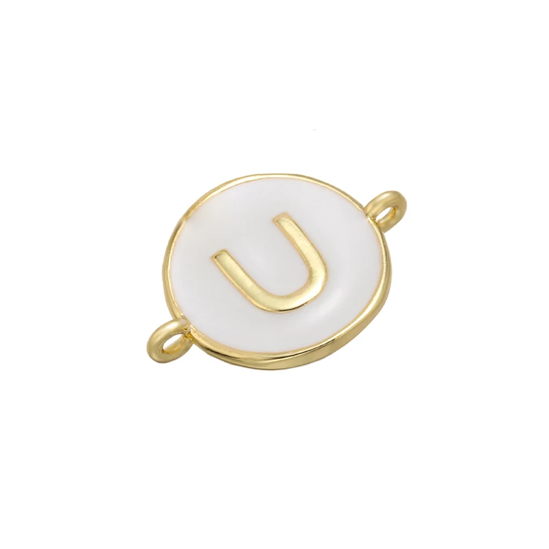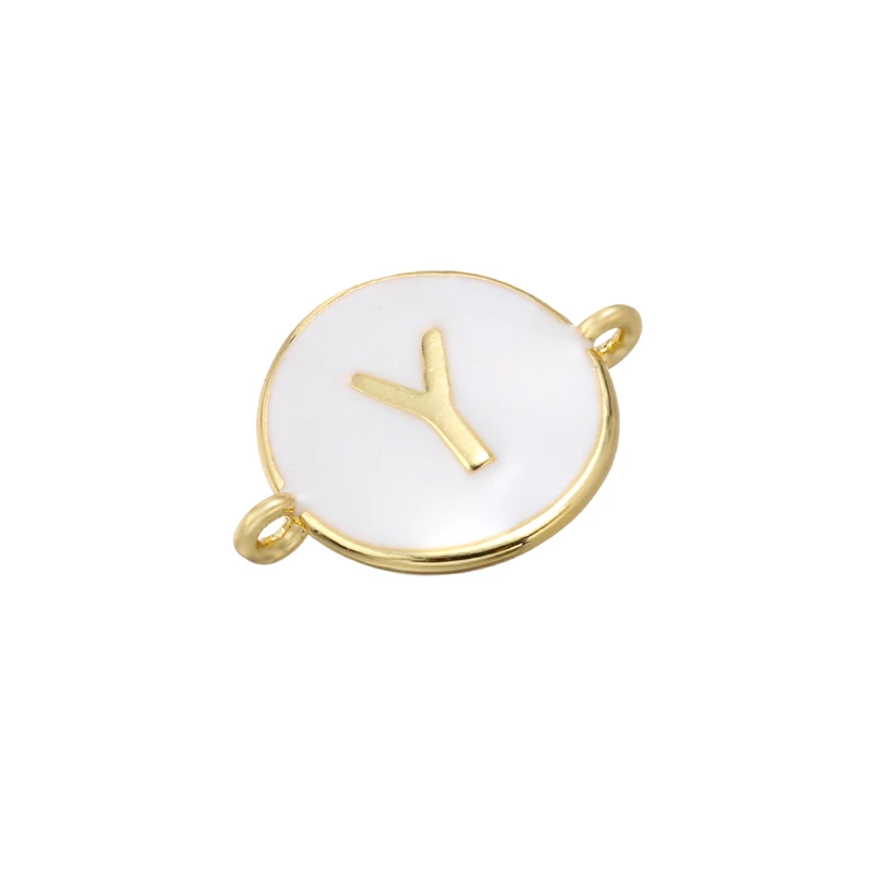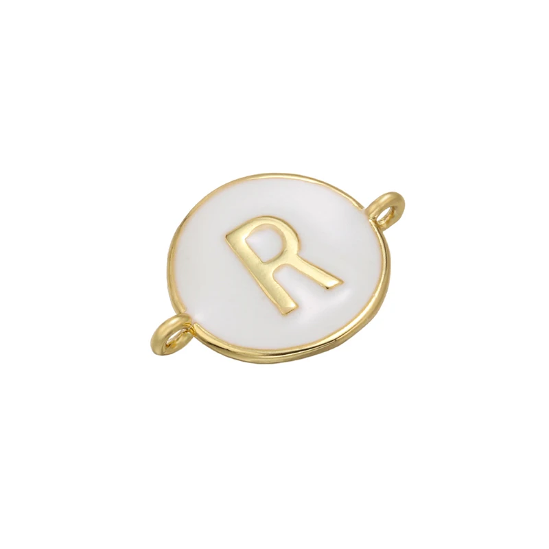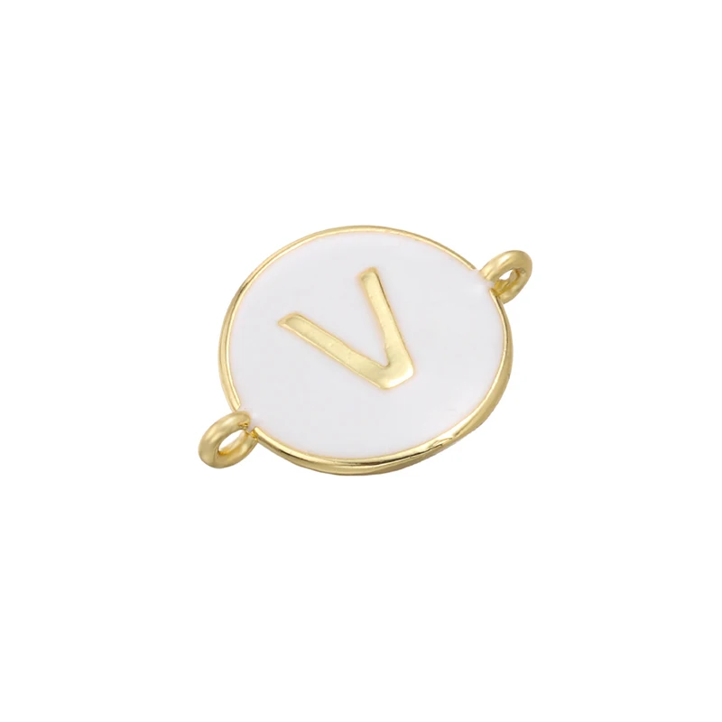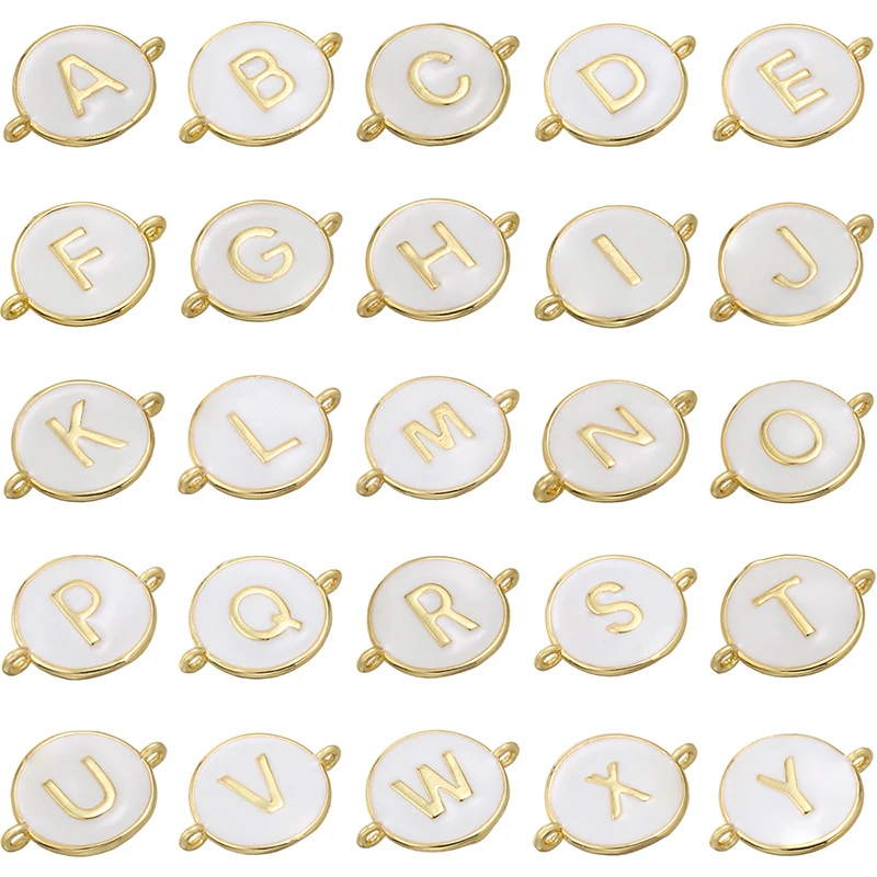 Color: Champagne - ZHUKOU 13x18mm white brass 26 letters jewelry connector for women bracelet necklace handmade jewelry accessories model: VS440