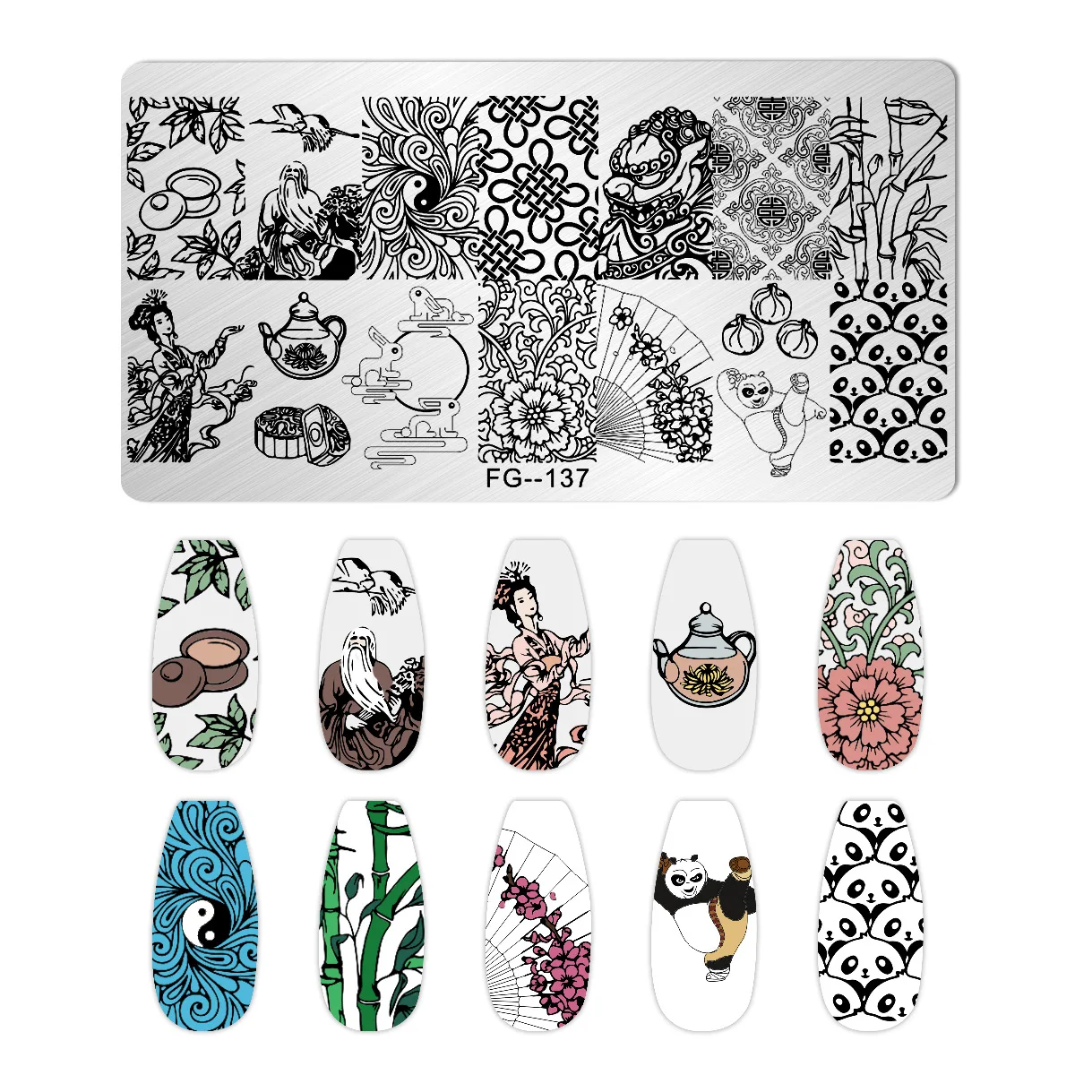 Color: Chocolate - Cute Cartoon Animal Nail Stamping Plates Cartoon Cat Mermaid Girl Gragon Brand Image Stainless Steel Stencil Nail Art Template