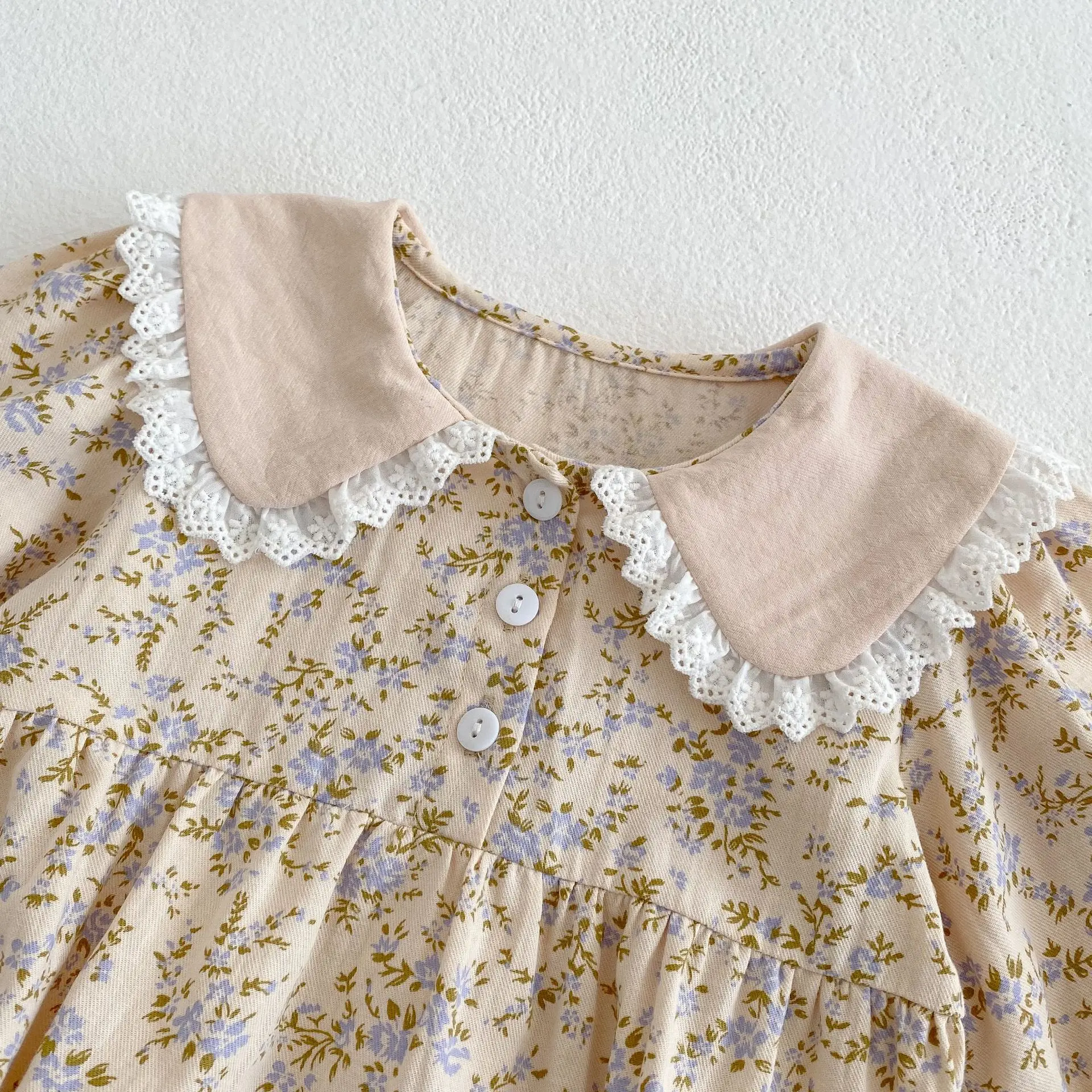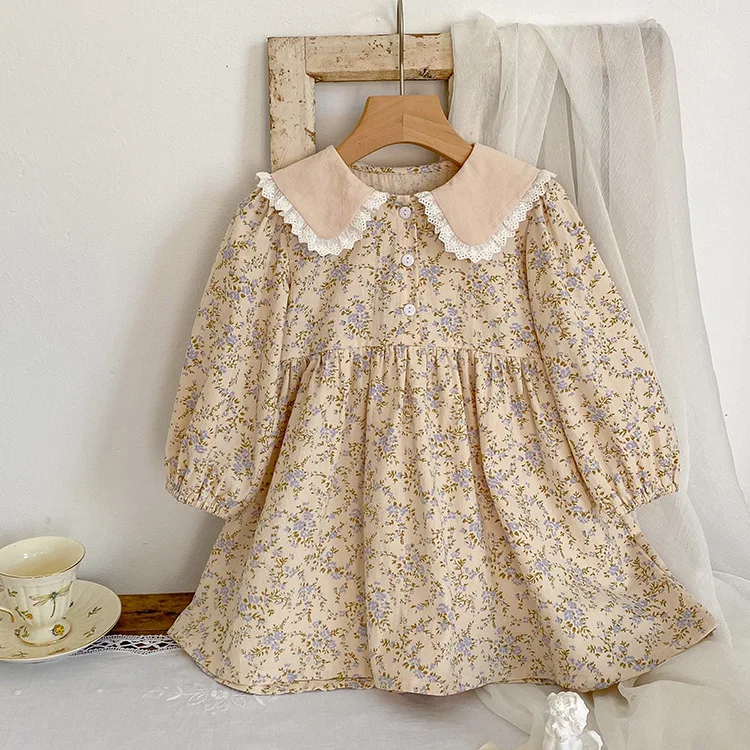 Color: Chocolate, Kid Size: 2T - Sweet Kids Baby Girls Long Sleeve Flower Printing Princess Dress Autumn Baby Girls Doll Collar Dress Children Clothes Dress