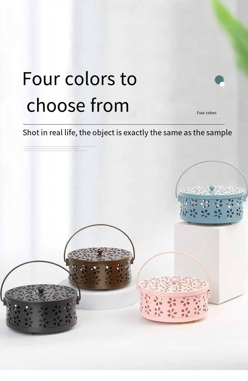 Color: Chocolate - Mosquito-repellent fireproof mosquito-repellent household with cover wrought iron sandalwood mosquito incense burner