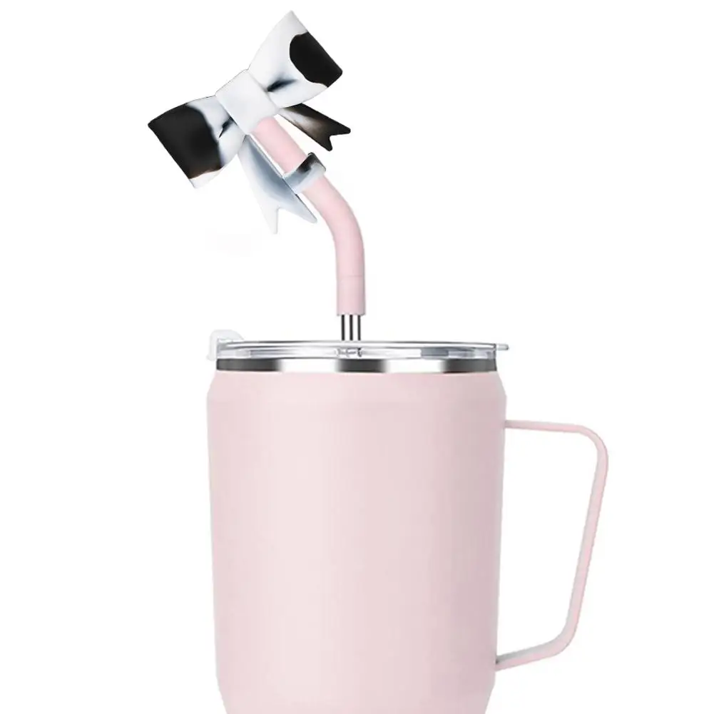 Lovely Bow Straw Covers Toppers Silicone Accessories For Stanley Cups 30&40 Oz Tumbler And With 1pc Protective Boot