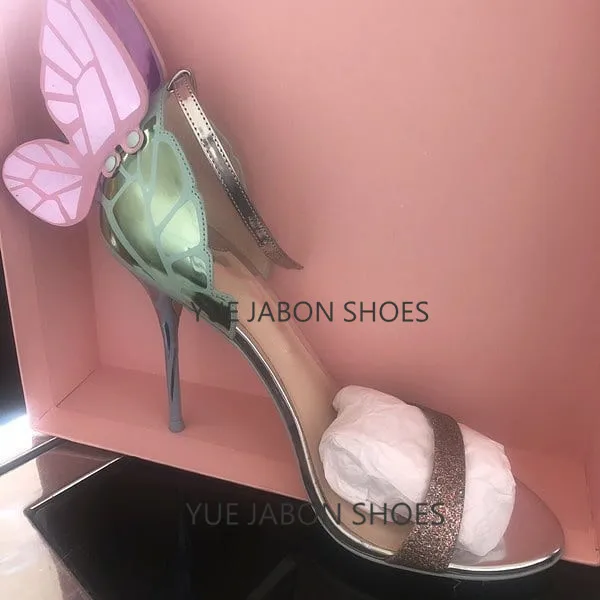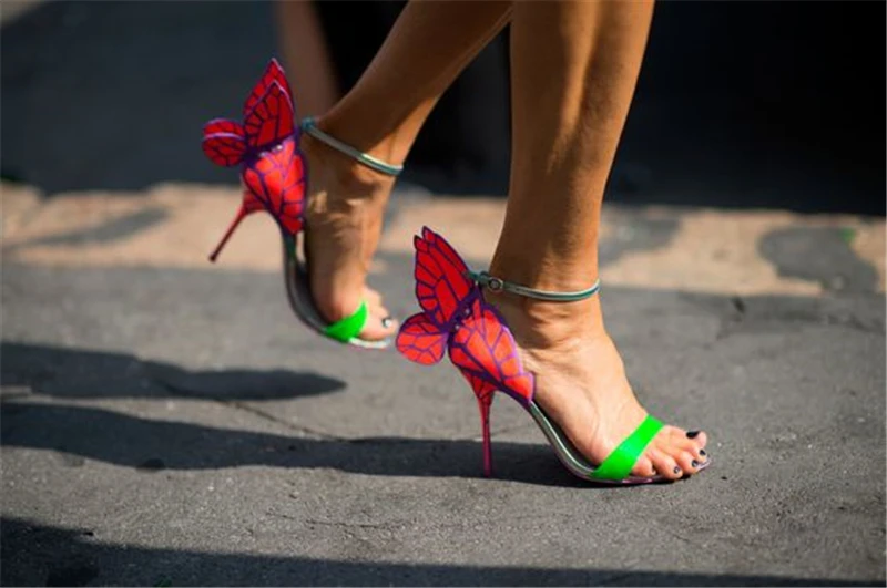 Color: Chocolate, Shoe Size: 10 - Women Summer Sandals Fashion Embroidered Satin Butterfly High Heeled Footwear Adjustable Ankle Strap Shoes Women high heels
