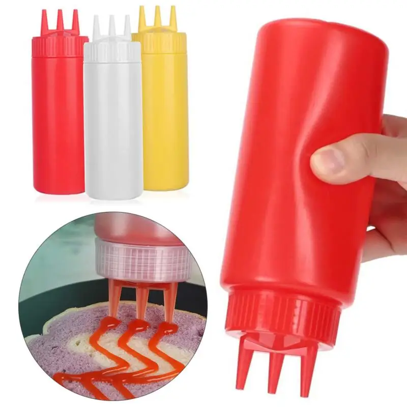 Color: Clear - 3 Holes 800ML Twist Cap Squeeze Bottle Food Grade Plastic Ketchup Mustard Mayo Sauces Olive Oil Bottles Kitchen Gadgets #1