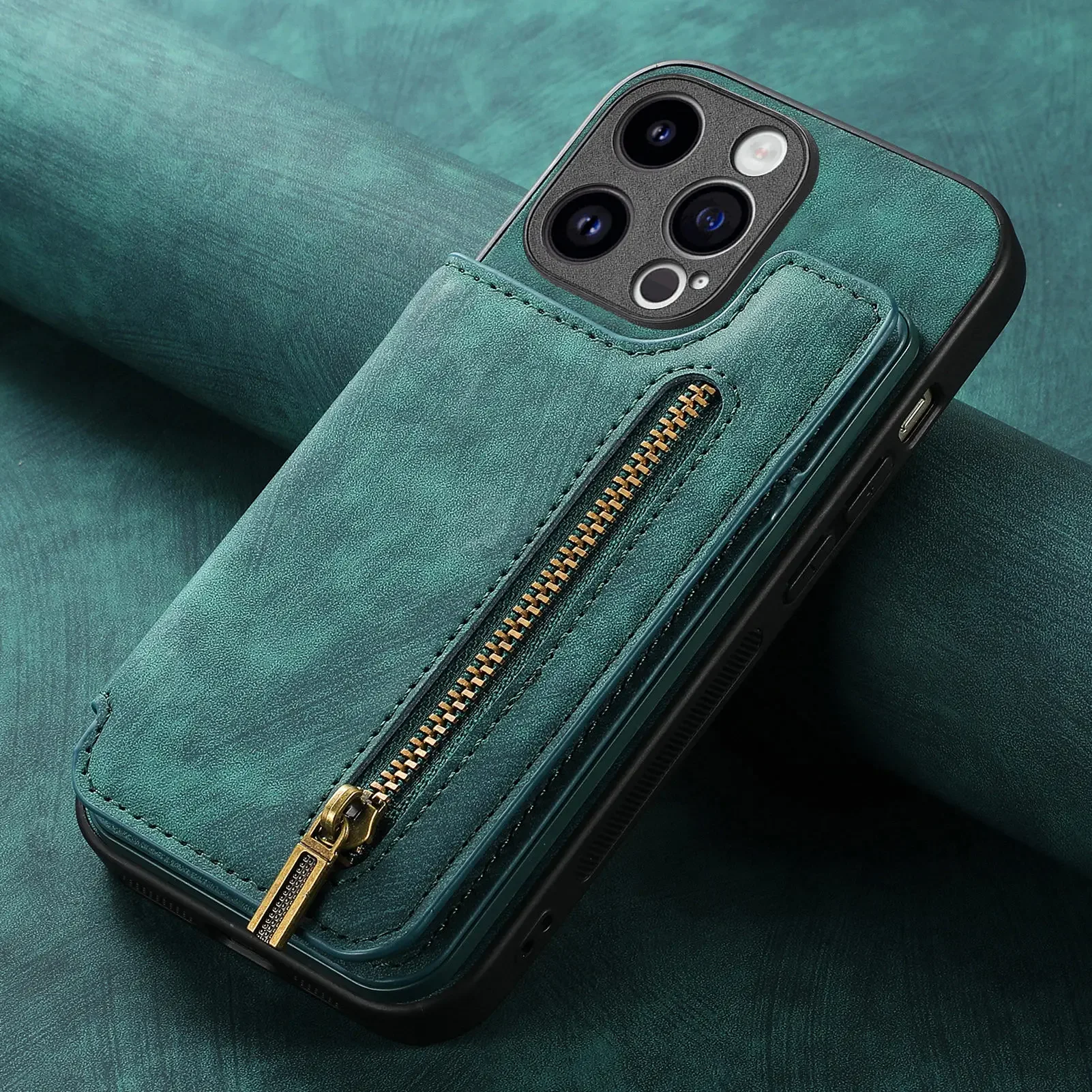 Zipper Wallet with Card Holder Phone Case for IPhone 15 14 11 Pro Max 13 12 Mini X XR XS Max 8 7 Plus Leather Shockproof Cover