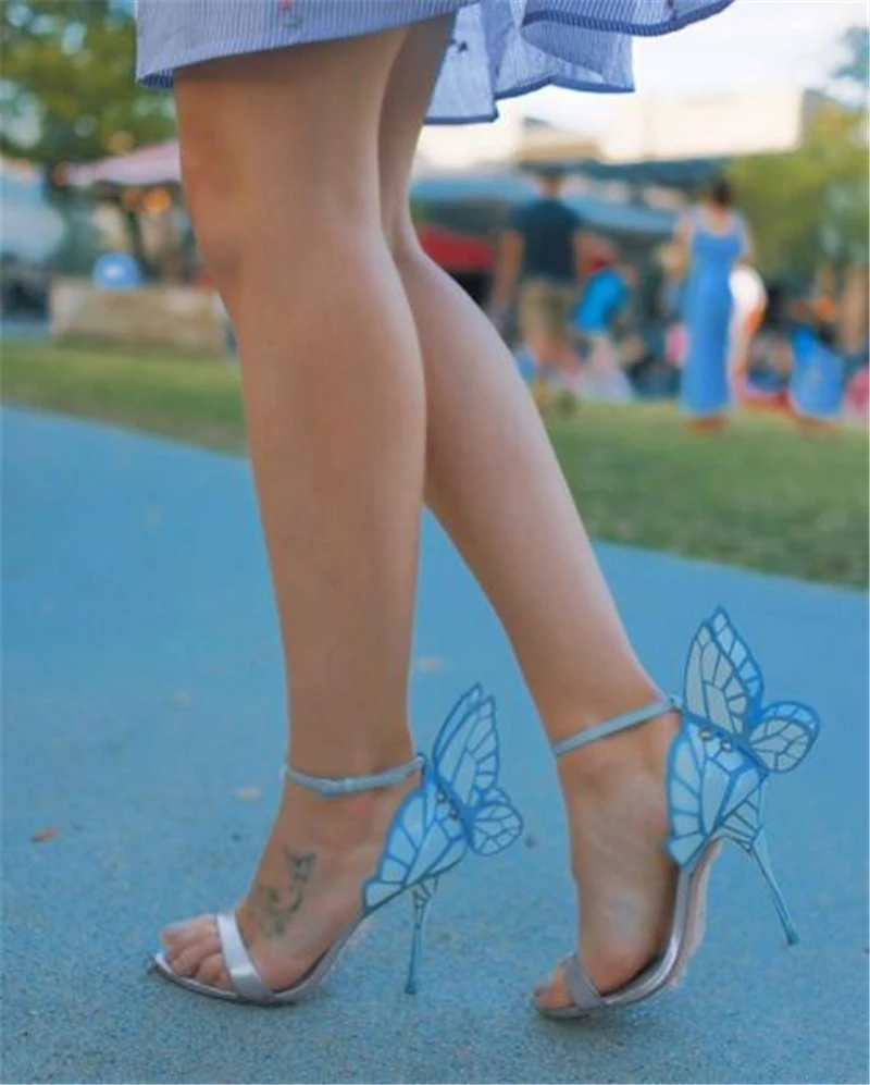 Color: Clear, Shoe Size: 7.5 - Women Summer Sandals Fashion Embroidered Satin Butterfly High Heeled Footwear Adjustable Ankle Strap Shoes Women high heels