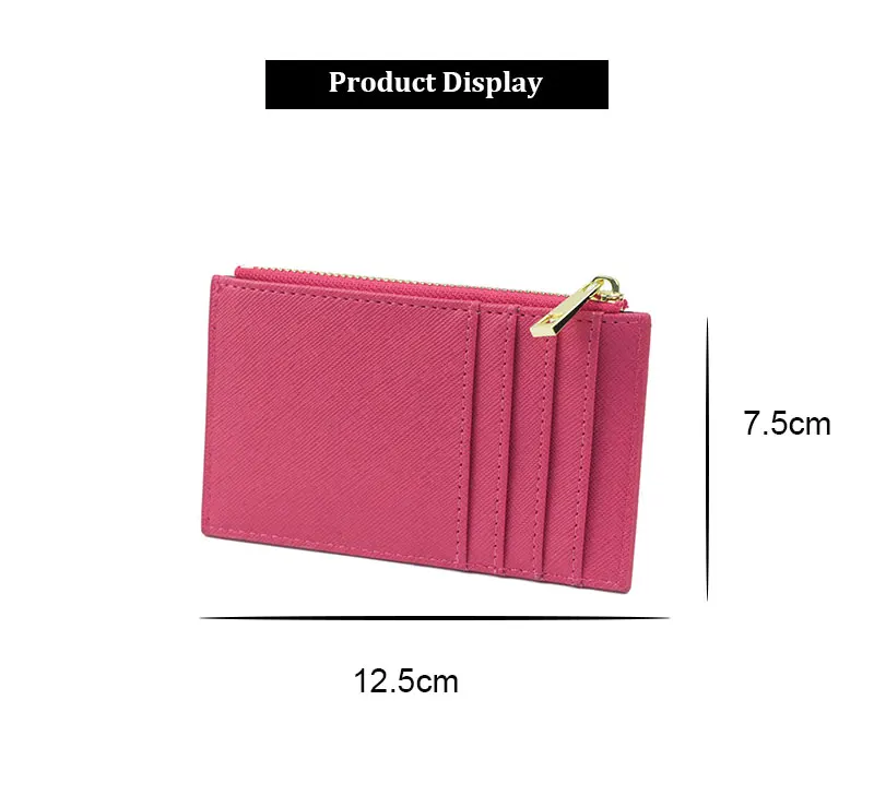 Color: Coffee - Custom Name Saffiano Leather Zip CardHolder Multiple Colors Ultra Thin Coin Purse Drop Shipping Small Women Credit Card Wallet