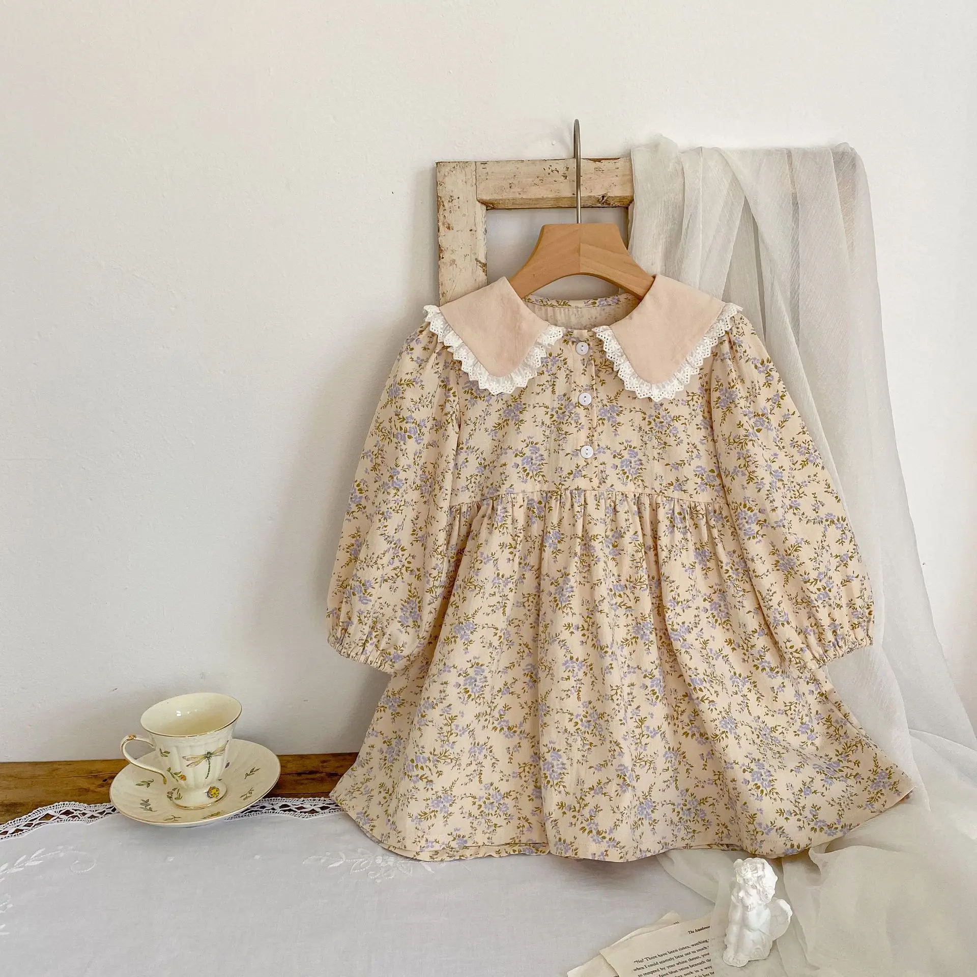 Color: Coffee, Kid Size: 3T - Sweet Kids Baby Girls Long Sleeve Flower Printing Princess Dress Autumn Baby Girls Doll Collar Dress Children Clothes Dress