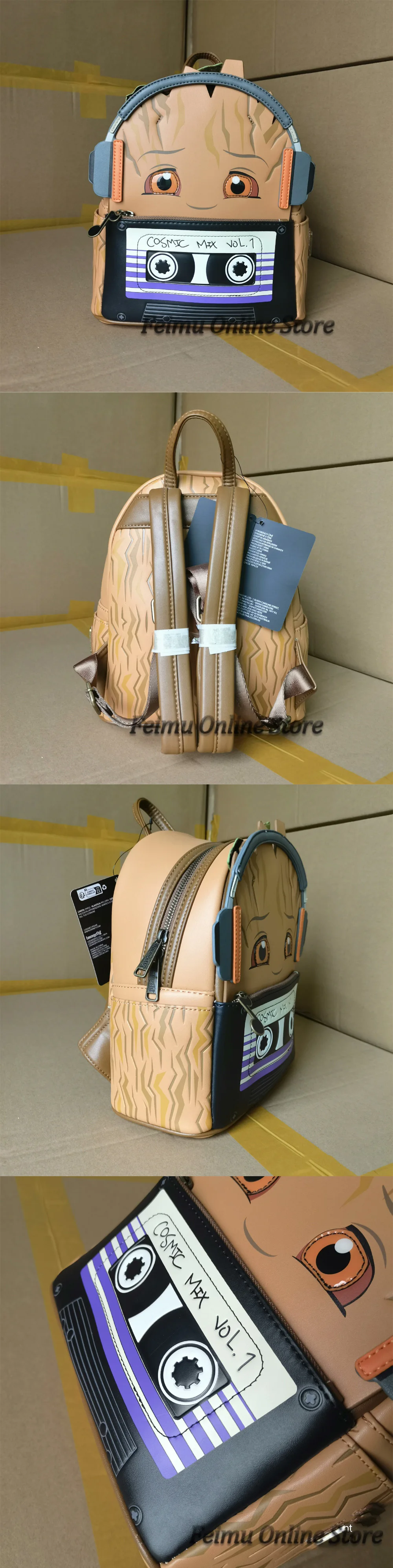 Disney Star Wars Women Double Strap Shoulder Bag Purse Pixar Cute Microphone Music Penguin PU Leather Backpack+Short Wallet Set