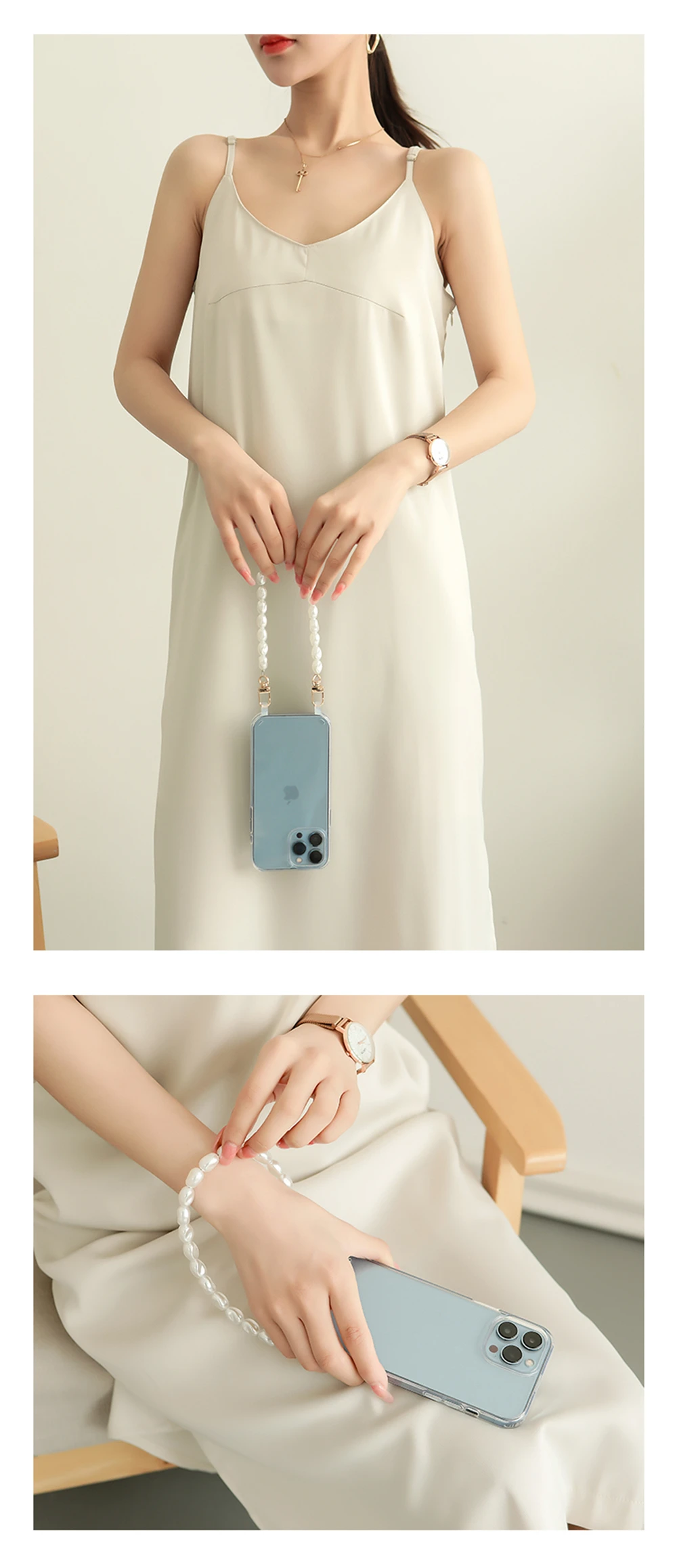 Function 1: Pearl Bracelet Crossbody Lanyard Necklace Phone case