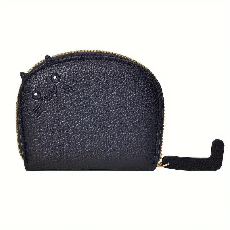 Color: dark blue - Cartoon Cat shaped design Wallet Women's Multi-card slots Holder Cute Fashion Faux Leather Coin Purse Creative ID Card Holder