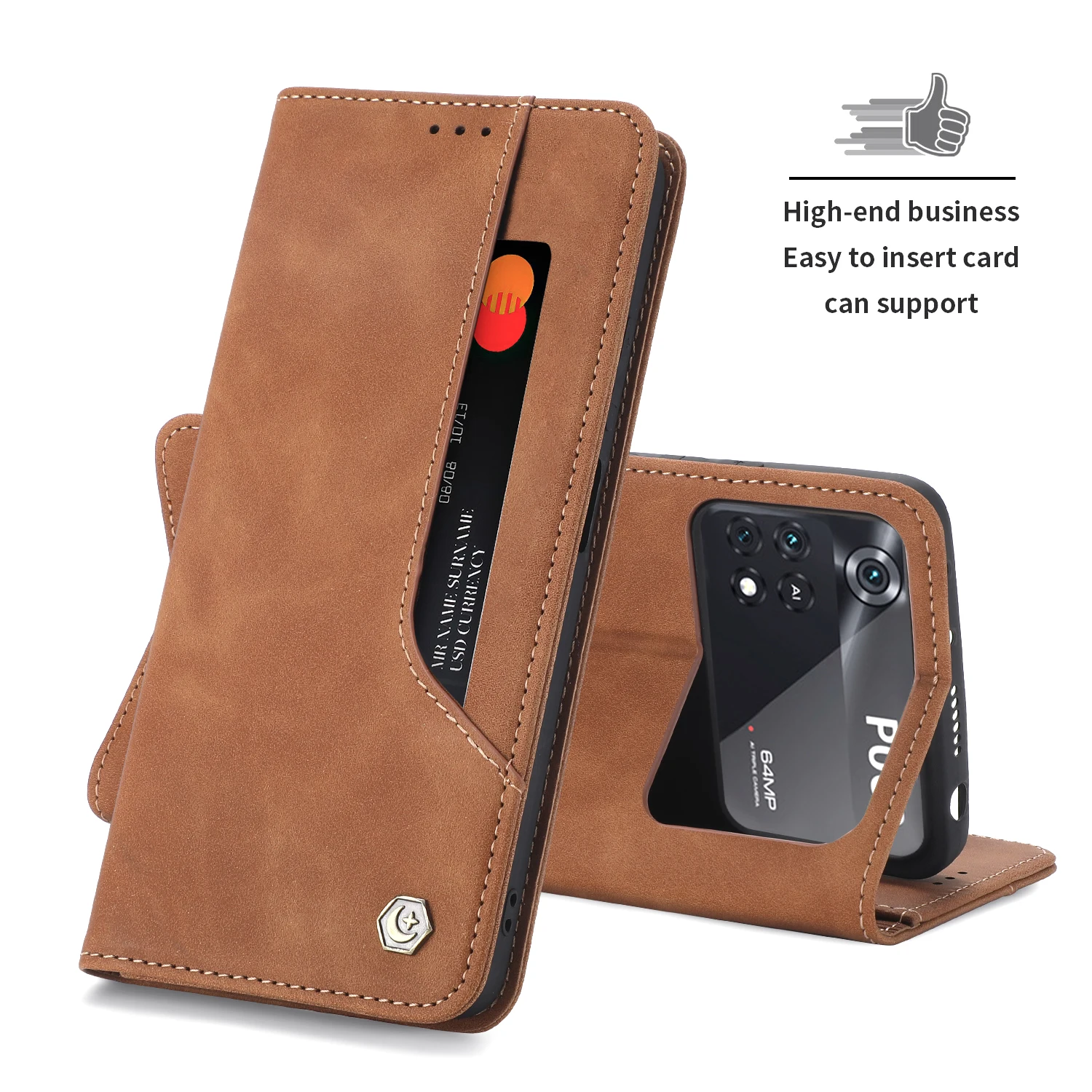 Color: Dark Brown, Material: Neoprene - Flip Leather Case For Xiaomi Mi 13 12T 11T 10T 11 12 Lite Pro 5G Poco F5 X5 Pro M6 M5S M4 F4 F3 X3 X4 GT Magnet Wallet Cover