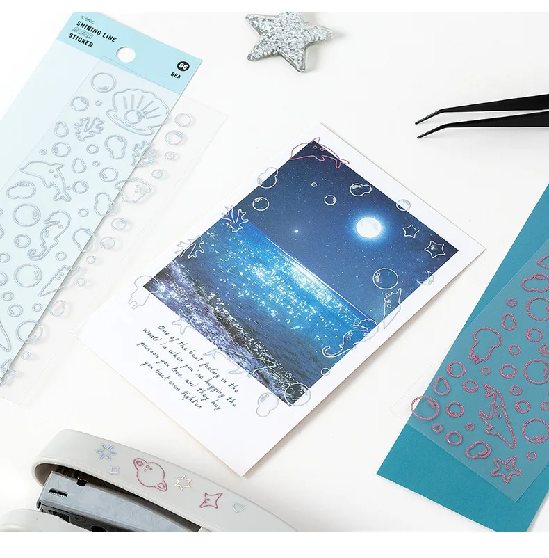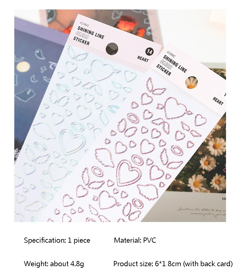 Color: DARK COFFEE - 1 Sheet Transparent Flash Laser Line Stickers Decorative Stationery DIY Scrapbooking Material Pvc Stickers Cute Album Stick
