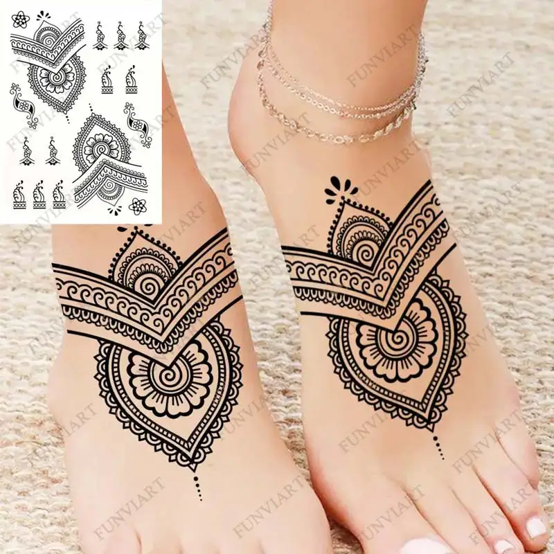 Color: Dark Coffee, Ships From: CHINA - Black Henna Temporary Tattoos for Women Lace Flower Mehndi Sticker for Hand Fake Henna Tattoo Sticker Body Art Hena Tatoo